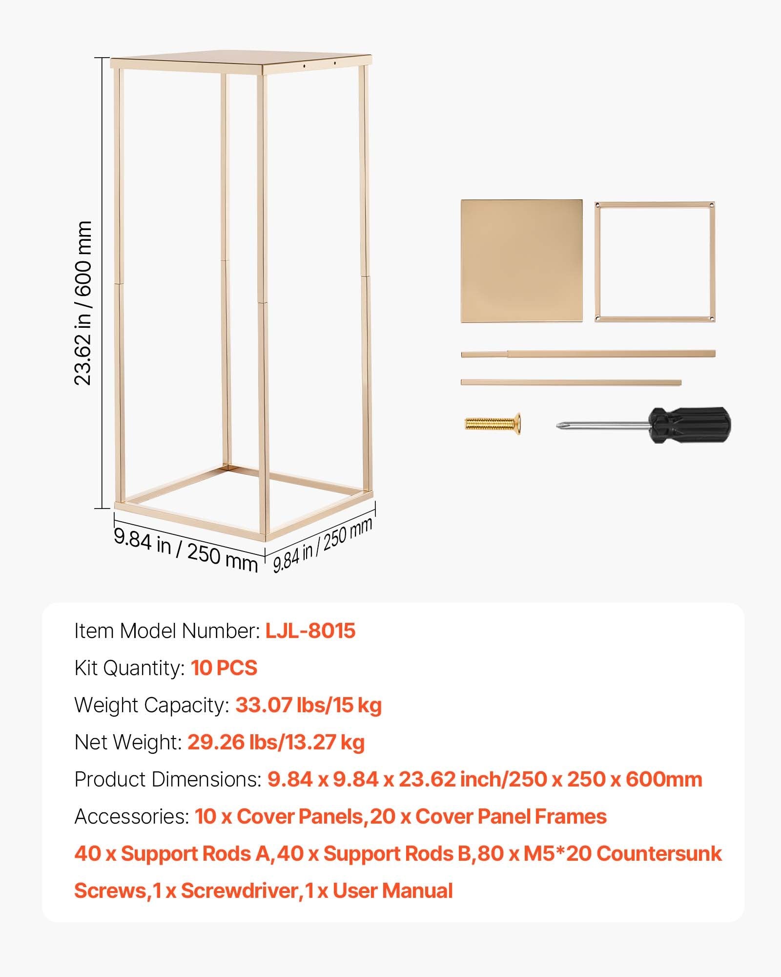 - Stylish and Stable: Crafted with a classic rectangular cubic structure, our gold floral stand delivers both elegance and stability. It supports up to 33.07 lbs/15 kg, ensuring reliable display of decorations while enhancing the atmosphere of weddings and festive occasions