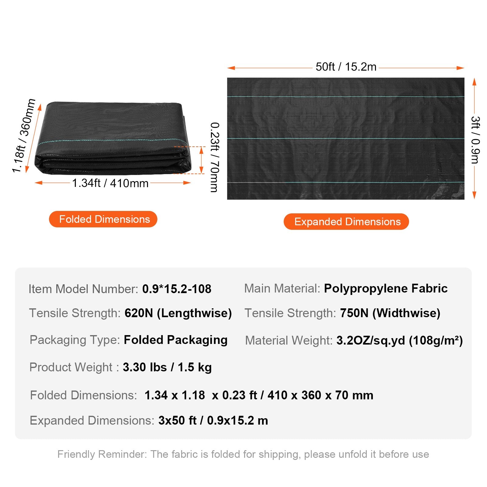 - Heavy Duty Weed Barrier Fabric: Crafted from 3.2OZ high-density, tear and corrosion resistant polypropylene, VEVOR 3 x 50FT woven weed barrier landscape fabric is the preferred choice for agriculture and industry. It ensures superior weed prevention and promotes soil health, keeping your landscaping remain weed-free for an extended period.