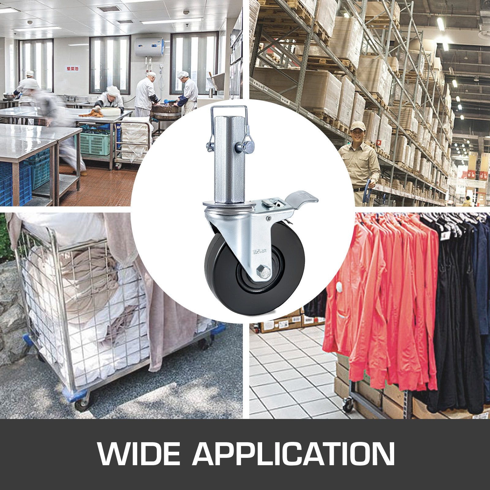 - Double Lock Mechanism: The locking mechanism can lock both the wheel and the swivel at the same time, which is essential for security and stability.