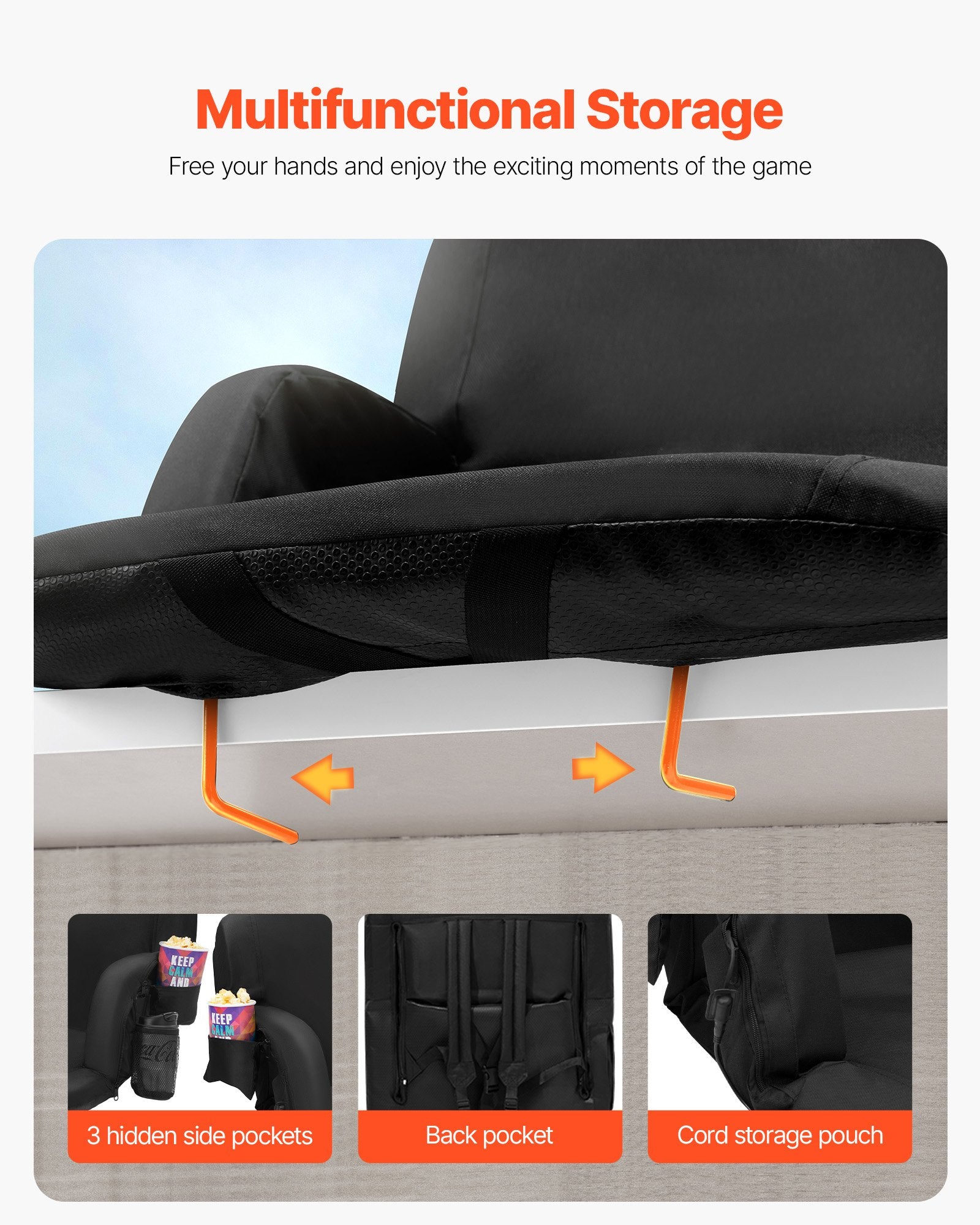 - Portable Seat: With an easy-to-move foldable design, the stadium seat chair can be flattened in one step and packed easily into a backpack, taking up minimal space in your car trunk. Perfect for parties, concerts, picnics, and spectator events. Equipped with multiple side pockets, each designed for different uses such as a cellphone pocket and a back pocket, it enhances your convenience at events.