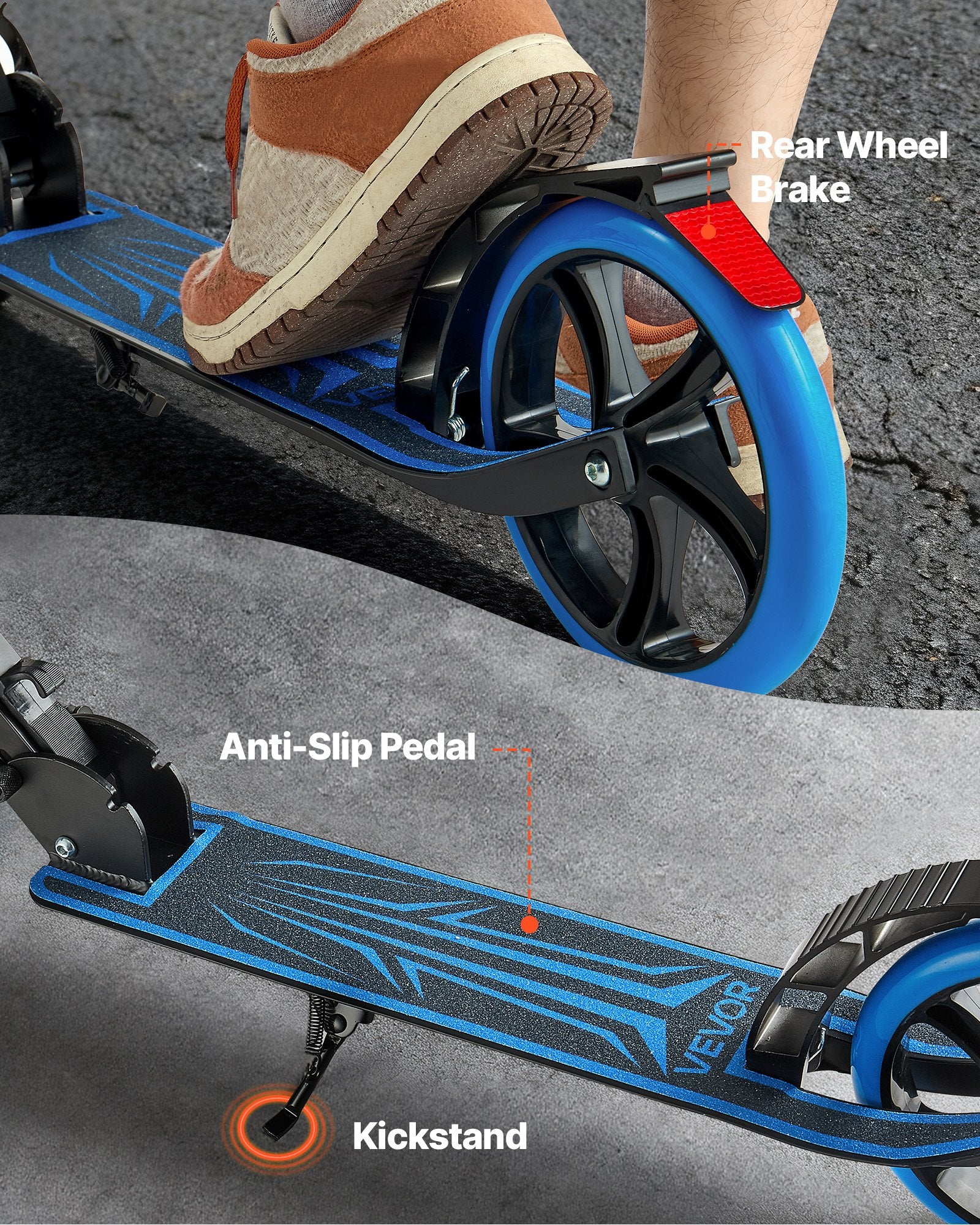 - Kids Scooter for Ages 8+: This 2-wheel kick scooter for kids features an aluminum alloy frame—lightweight, durable, and capable of supporting up to 220 lbs. A fun and active companion that encourages outdoor play, confidence, and joy