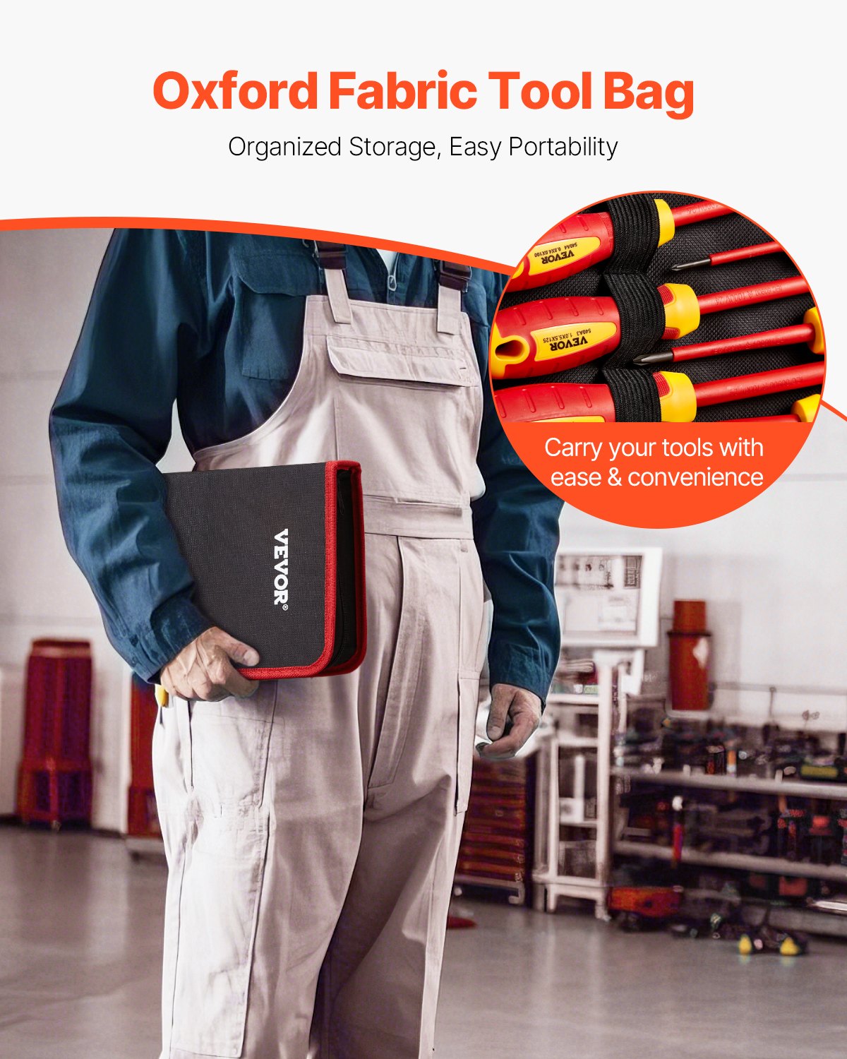 - Oxford Cloth Tool Bag: The durable Oxford cloth tool bag keeps the insulated tools from damage. Its well-organized internal compartments make it easy to store tools and find the right one quickly