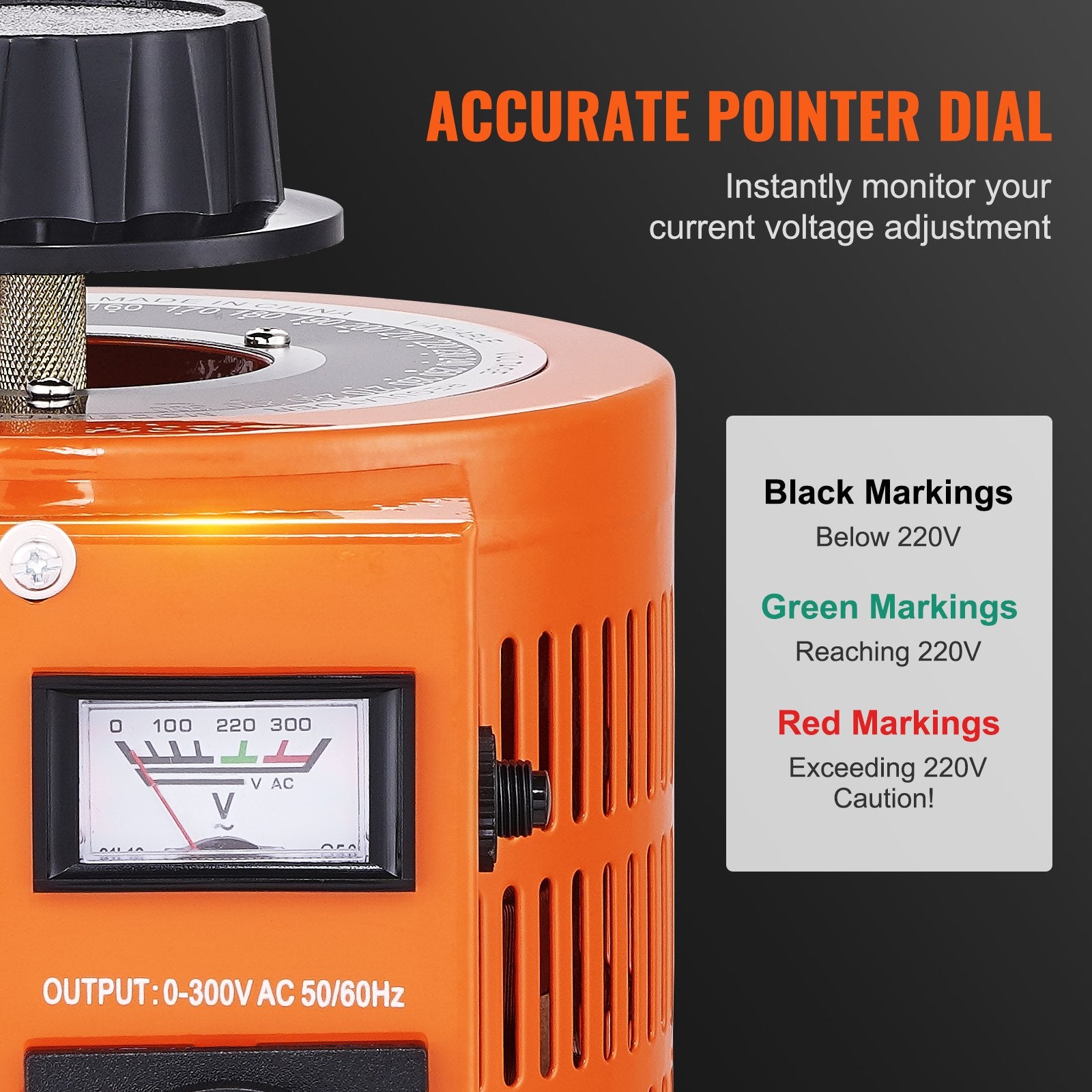 - Precision at Your Fingertips: Our variable voltage transformer is equipped with an analog dial, allowing you to monitor the current output voltage at a glance easily. Adjust the voltage effortlessly with a top-mounted knob that's designed for comfort and flexibility. The metal scale plate features clear, easily readable markings, enabling you to dial in the exact voltage you need swiftly.