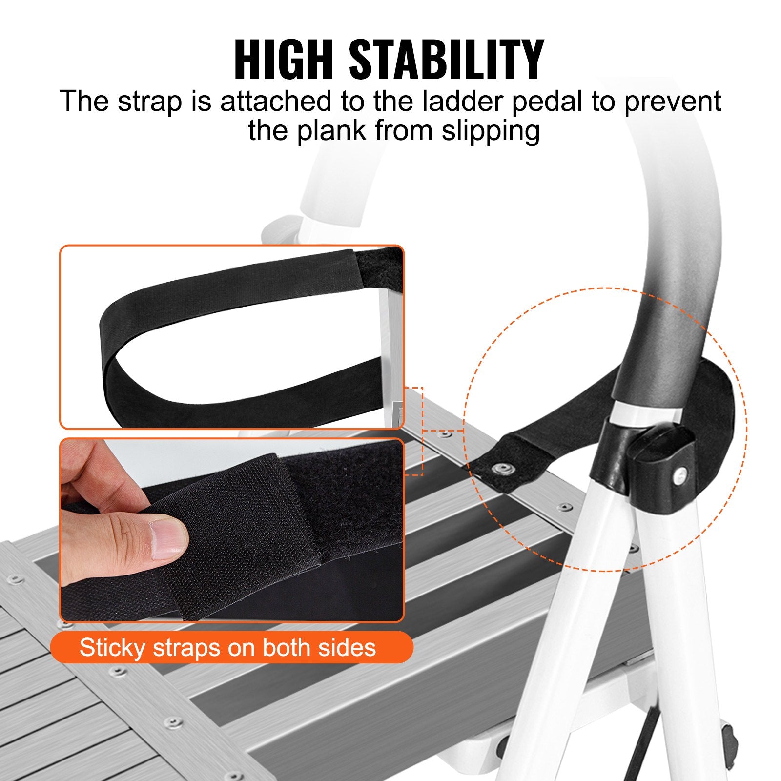 - Nylon Sticky Straps: We are always concerned about your security. So the aluminum plank features a sticky strap to avoid slipping off the ladder. And a non-slip surface to increase friction to avoid accidents.