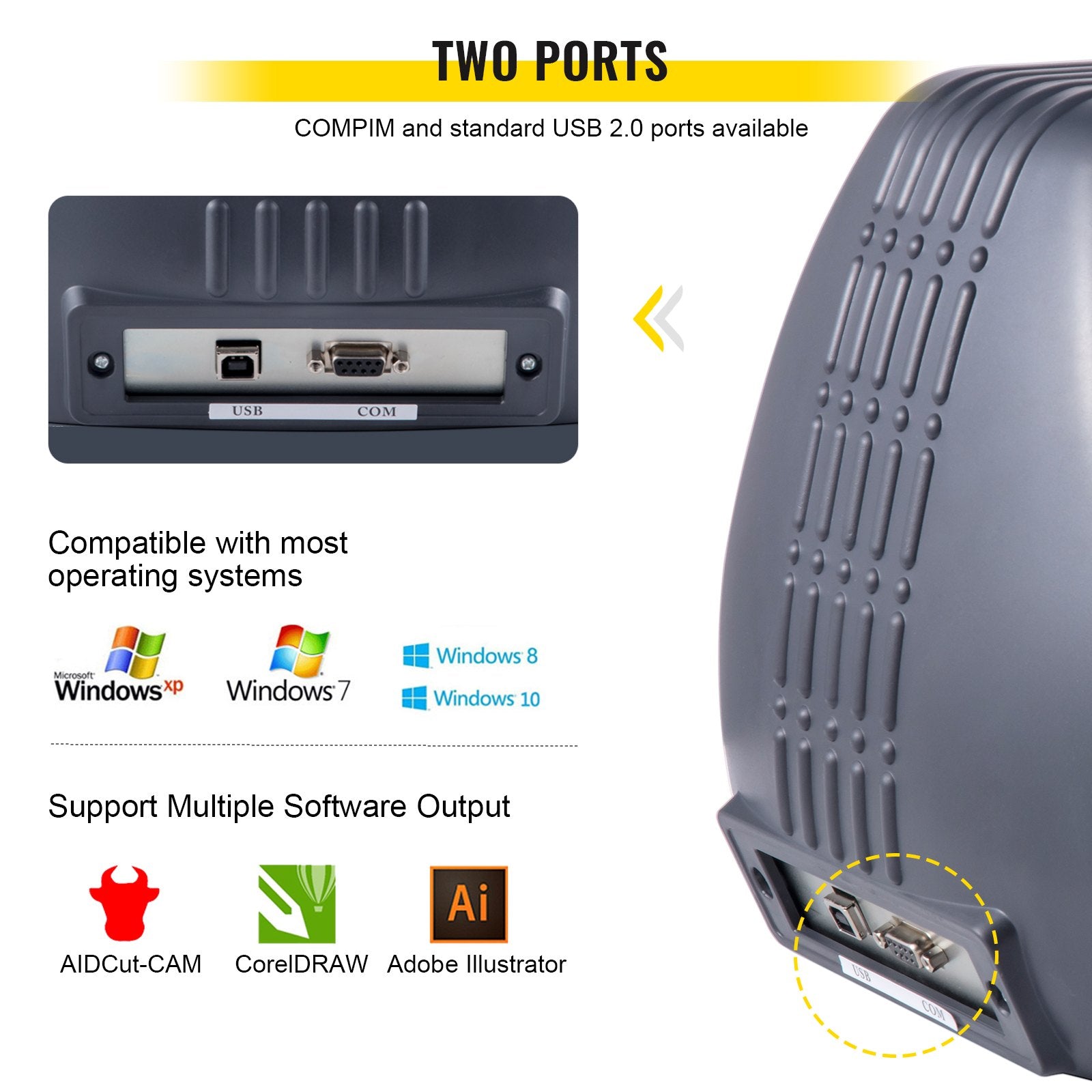 - 【HIGH COMPATIBILITY】- Available with COMPIM and USB interface for more precise control. Support DM/PL, HP/GL language. System: Pentium processor-based PC or compatible computer (Windows), Windows XP/VISTA/7/8/10 (32&64). NOT compatible with the Mac system.