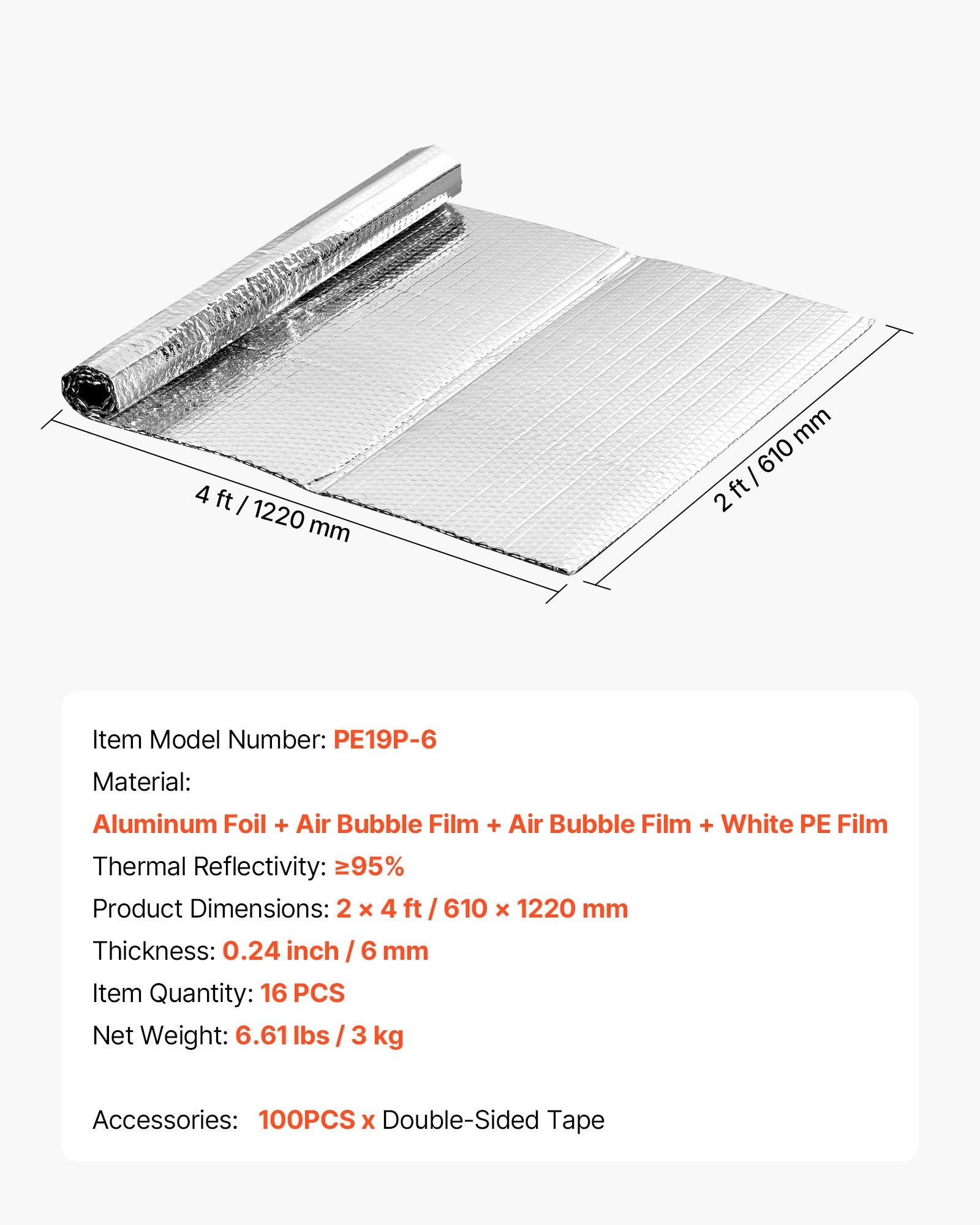 - 3-in-1 Design: VEVOR 16-piece, 1.22 m x 0.61 m double reflective insulation sheet features a versatile 3-in-1 design: radiant barrier + insulation + vapour control, ensuring exceptional thermal performance. Excellent radiant barrier keeps you cool in summer and warm in winter