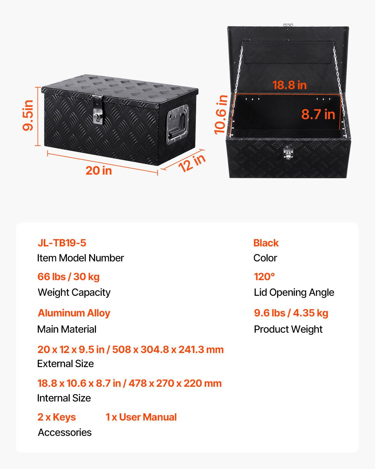 - Upgraded Anti-Theft: Equipped with an external stainless steel lock and two keys, this aluminum truck box prevents forced opening, ensuring your tools are secure when parked at construction sites or in parking lots