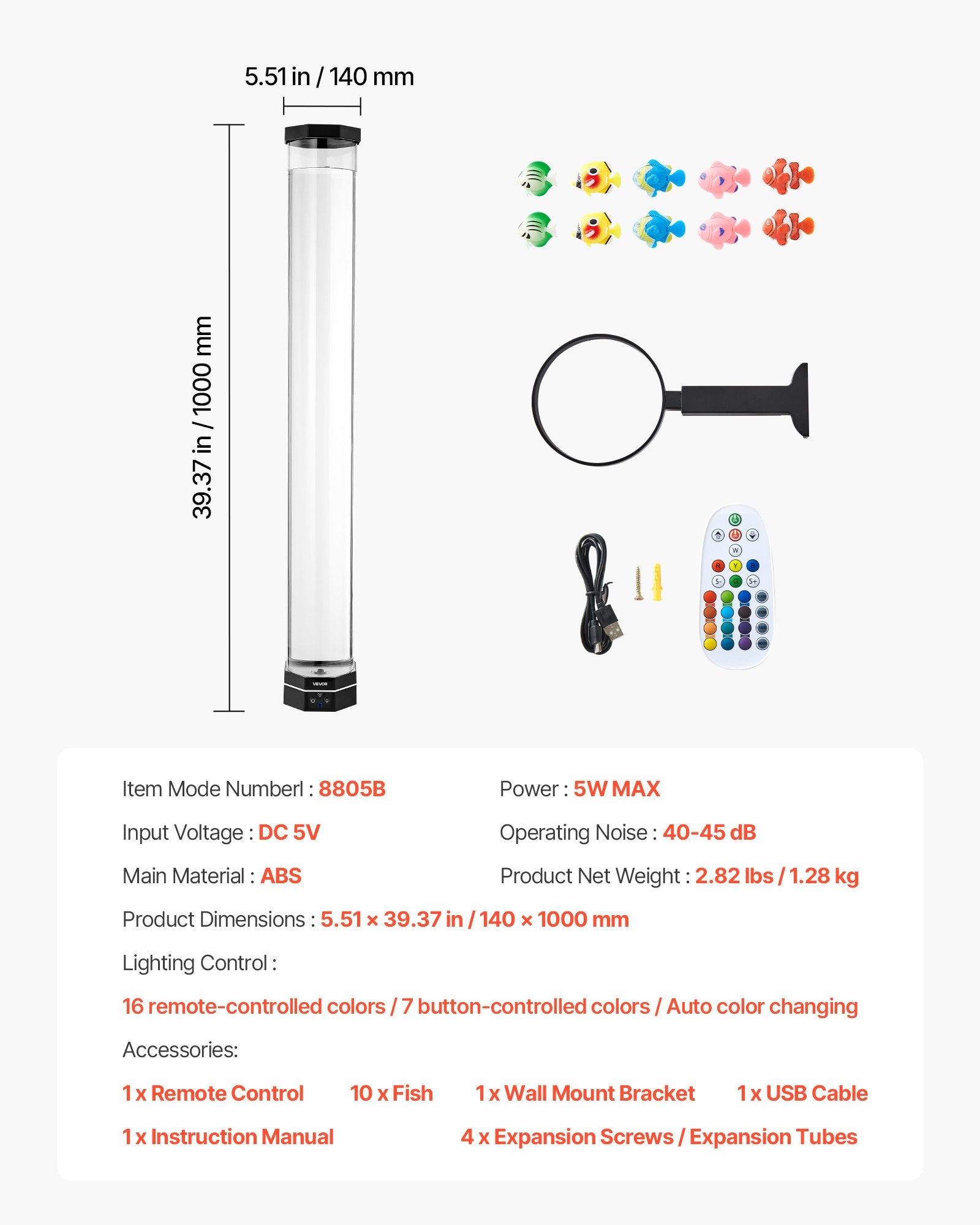 - Anti-tip Design: Standing at 3.3 ft / 1000 mm tall, this bubble tube lamp is ideal for creating ambiance in any room. The widened tube walls avoid fish warping, enhancing their realism. A sturdy base ensures stability, keeping it secure