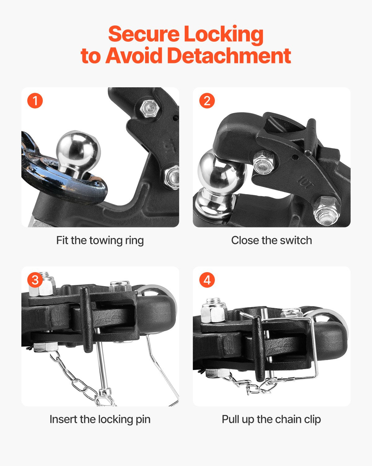 - Security Locking: After pulling down the latch, secure the pintle hook trailer hitch with a pin or R-pin to minimize the risk of accidental detachment or loosening during use. This is especially beneficial for travel on bumpy roads, providing extra security.