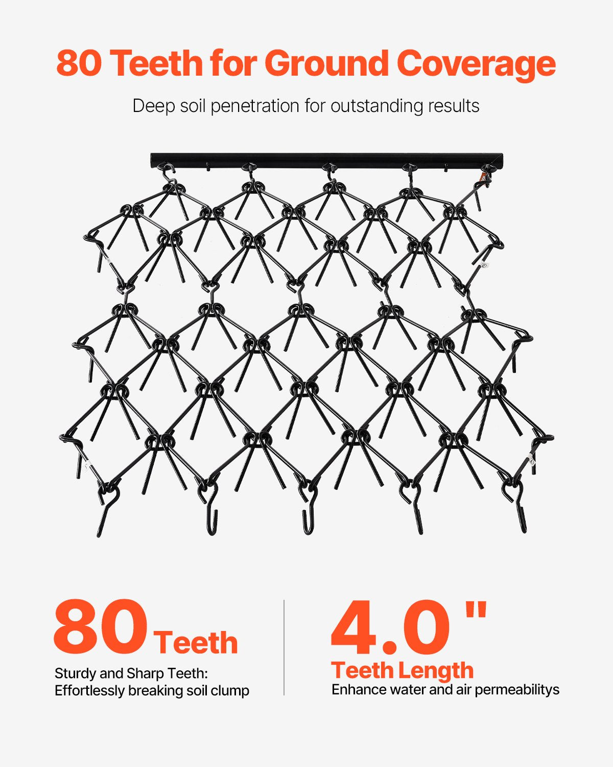 - Remarkable Leveling Effect: With 80 tines, each 5.9 in long, this chain harrow easily breaks up clumps and loosens hard soil, ensuring a smooth and refined surface. Weighing 58.29 lbs, it efficiently levels the land, making soil preparation fast and effective.
