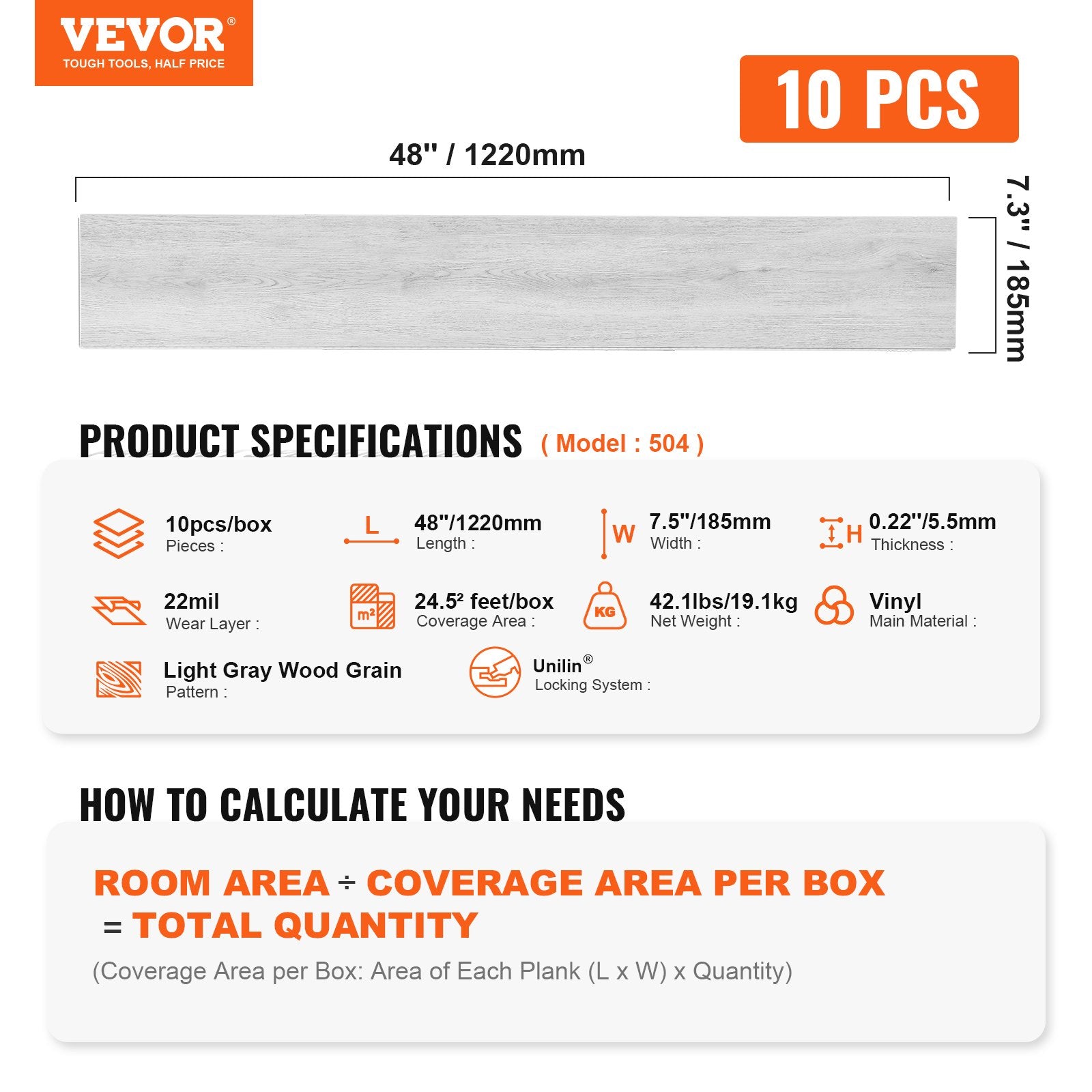 Interlocking Vinyl Floor Tiles 1220 X 185 mm, 10 Tiles 5.5mm Thick Snap Together, Light Gray Wood Grain DIY Flooring for Kitchen, Dining Room, Bedrooms & Bathrooms, Easy for Home Decor