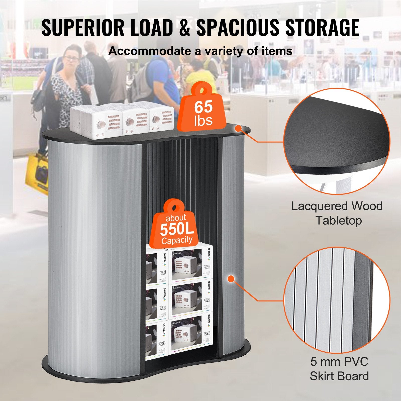 - Superb Weight Capacity & Spacious Storage: The trade show counter supports up to 65 pounds on the tabletop with its large-capacity hollow storage space. The spacious storage accommodates various items, ensuring organized displays.