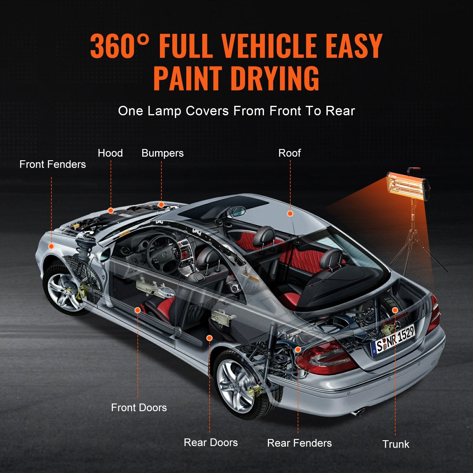 - Full Car Baking: With 360° full-car coverage, this paint dryer meets all painting needs from bumper to rear, covering every part of the car from front to back, providing a comprehensive and efficient painting solution.