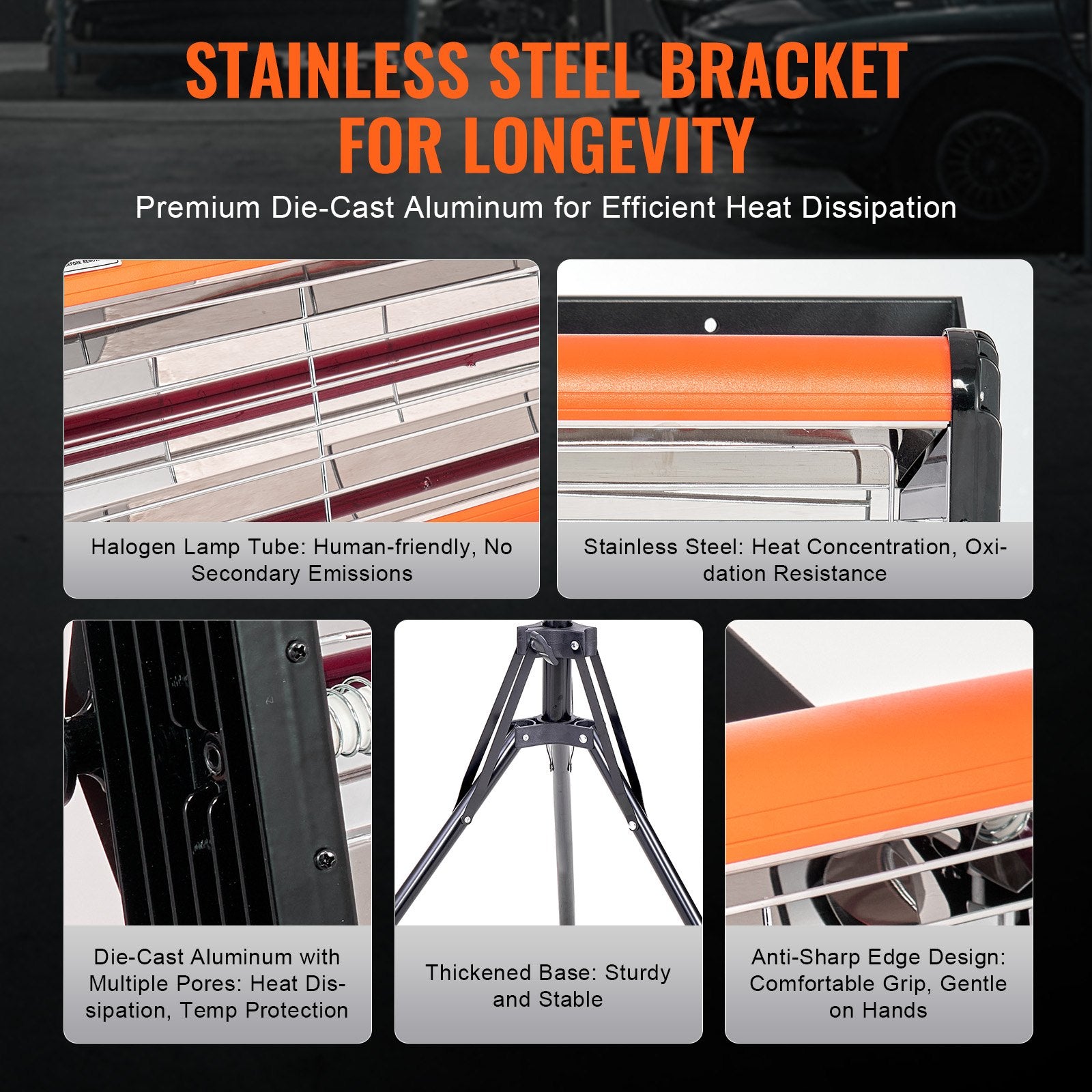 - Safety Protection: To address safety concerns, we provide high-quality halogen lamp tubes and an anti-oxidation stainless steel lamp cover. The thickened base ensures stability and prevents shaking, while the smooth edges ensure comfort and prevent injuries, guaranteeing long-term use with peace of mind.