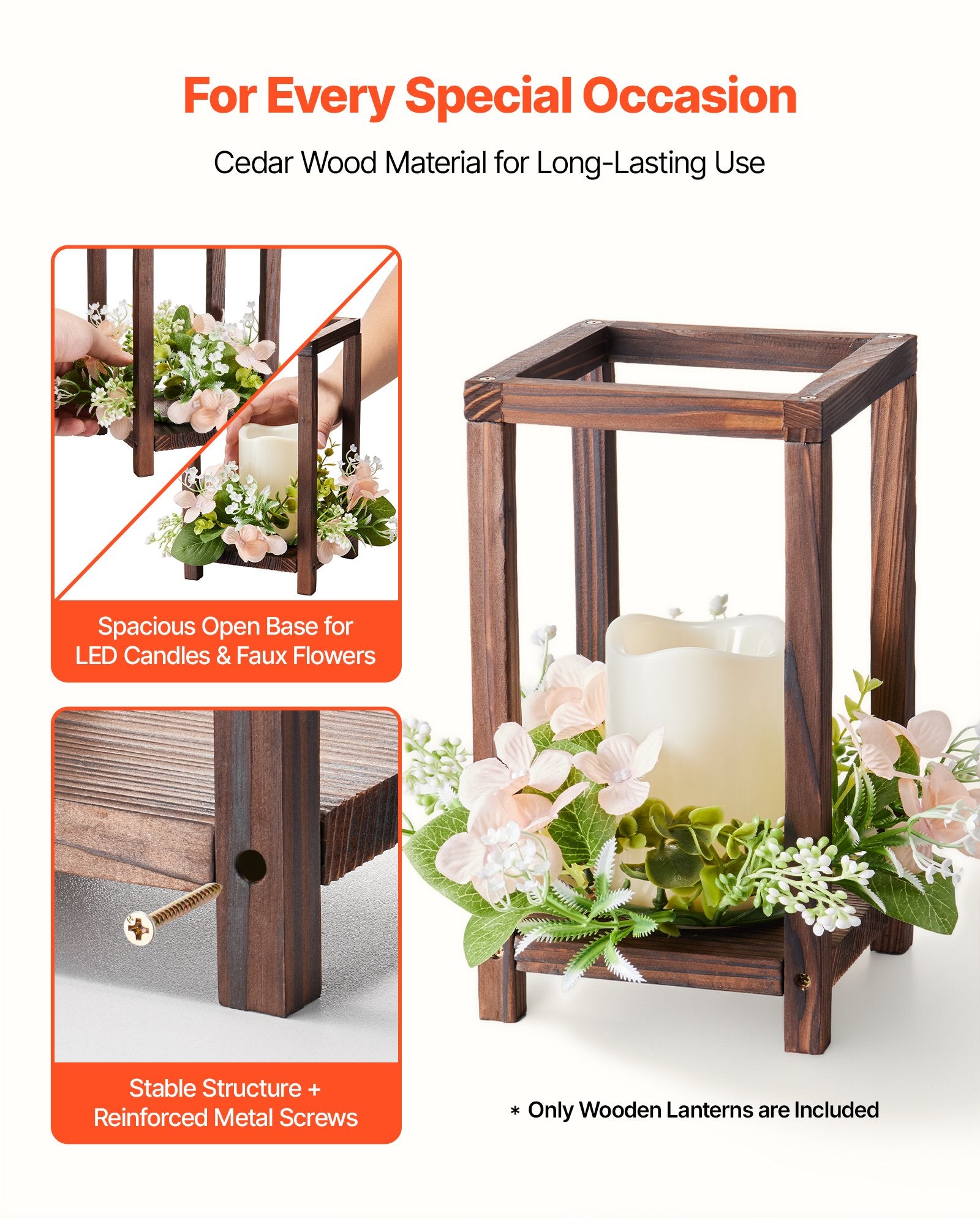 - Easy & Quick Assembly: These wood lanterns come with enough screws and a dedicated screwdriver. With pre-drilled holes and an illustrated user manual, they are simple to set up with no extra tools needed, even for beginners. Save time on decor preparation