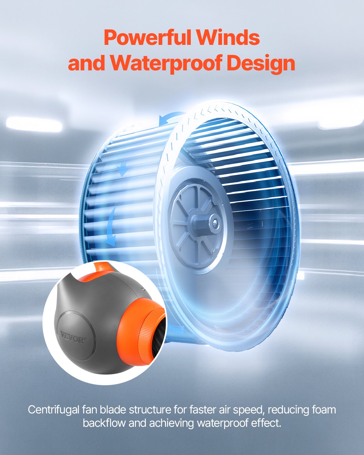 - Low Noise & Reliable: Our party foam cannon uses a centrifugal fan with a separate motor and airflow path to prevent foam water from reaching the control board and damaging the fan. The noise is reduced to 80dB, making it ideal for use in your yard, even with children around.