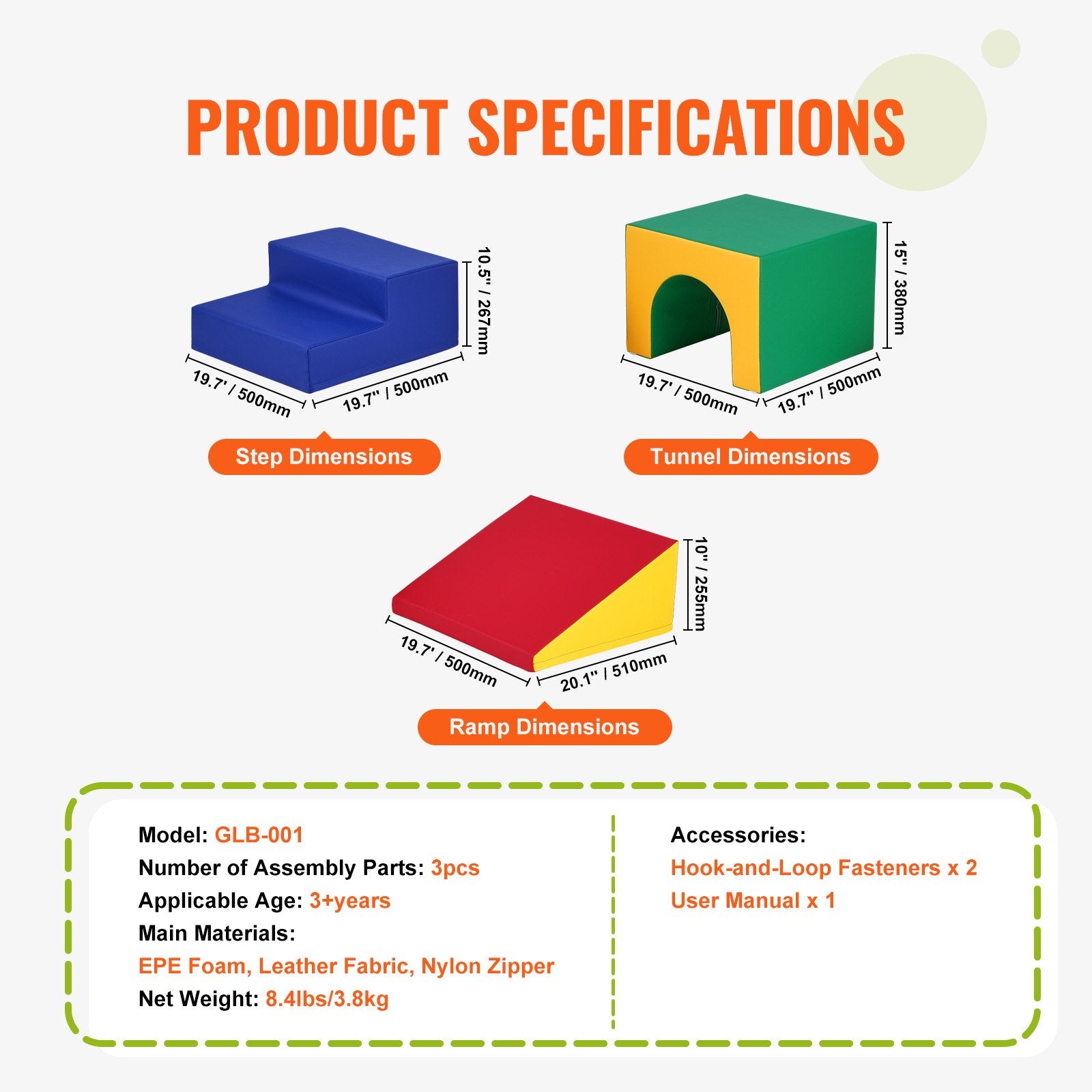 Single Tunnel Climber, Toddler Playset, Foam Climbing Blocks for Toddlers, Kids Tunnel Maze with Stairs and Ramp, Indoor for Toddlers and Preschoolers Easy to Clean, 3 pcs (Assorted)