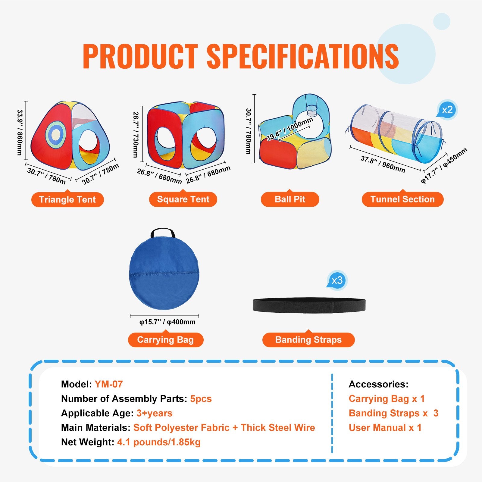 - Sparking Imagination: The vibrant and bright colors are designed to capture children's attention and ignite their imagination. With a 5-section design, kids can freely arrange and play, whether it's chasing, crawling, or playing hide-and-seek inside the tent tunnel. This stimulates children's brain development and provides endless joy!