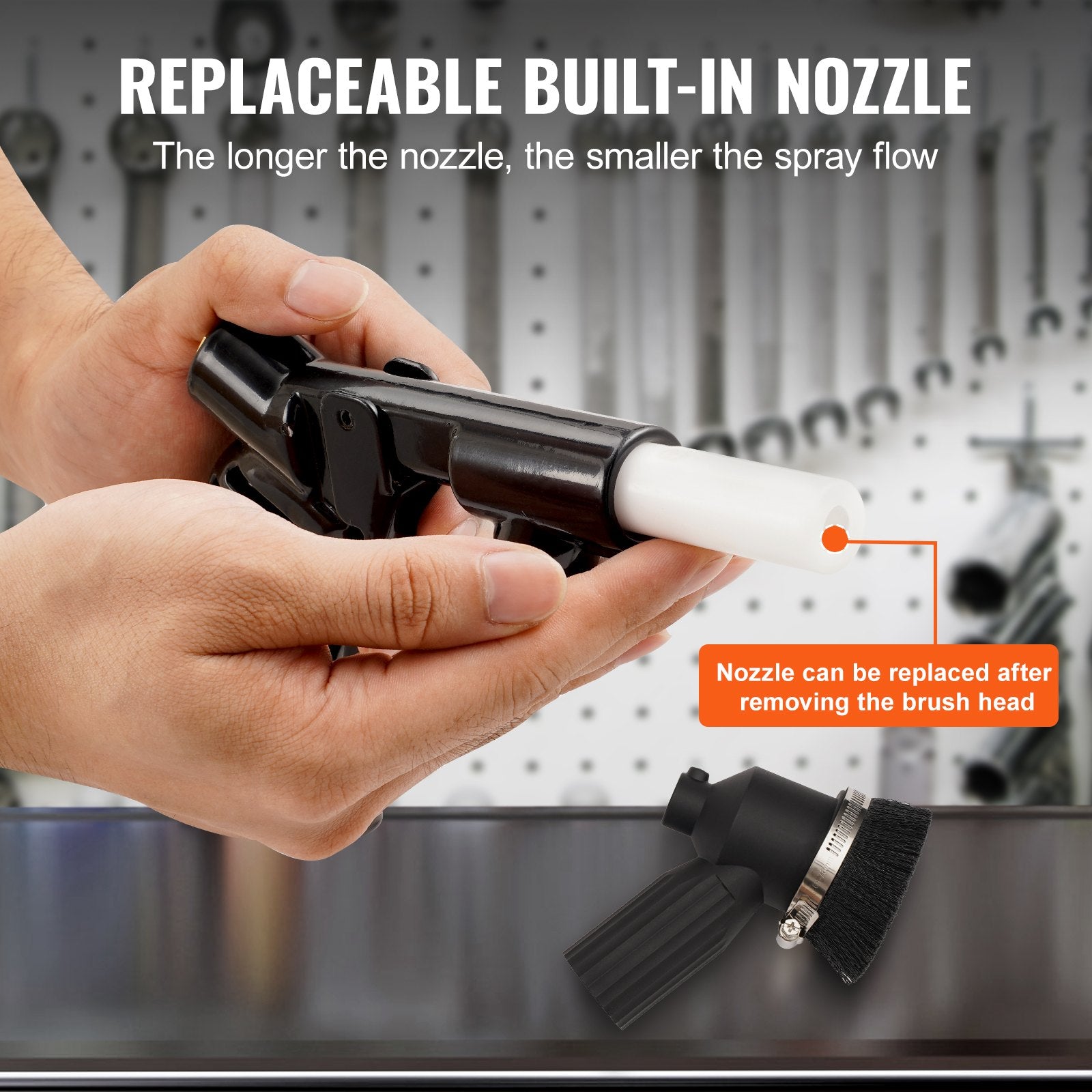 - Versatile and Safe Operation: Recommended abrasive capacity is 20-35 lbs, compatible with 60-100 grit abrasives such as glass slag, walnut shells, iron ore sand, silica sand, and aluminum oxide. The blasting gun nozzle is suitable not only for flat surfaces, but also for holes and edges. (PLEASE NOTE: The used abrasive needs to be dry, or it will cause clogging)