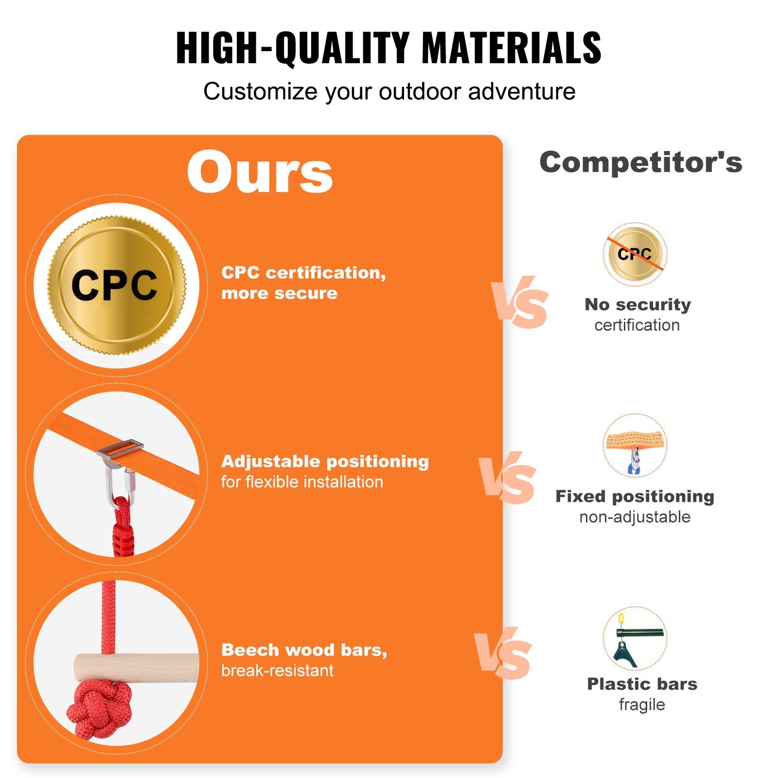 - Quick Installation and Disassembly: The outdoor playset equipment can be assembled in just 5 minutes. There's no need for a wide flat area in your yard; just fix it between two trees or poles 20 to 40 feet apart to start customizing your obstacle challenge game! It's an ideal alternative to traditional playgrounds, offering a convenient and flexible backyard challenge game for children of various ages and skill levels.