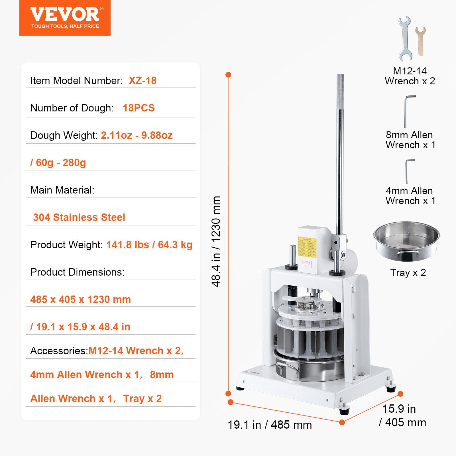 - 18pcs Equal: This electric dough divider can divide a large dough into 18 equal portions. Each one can range from 60 to 280 grams (2.11 to 9.88 oz). It features fast, non-stick, efficient dough dividing, avoiding the problem of unequal size caused by manual segmentation.