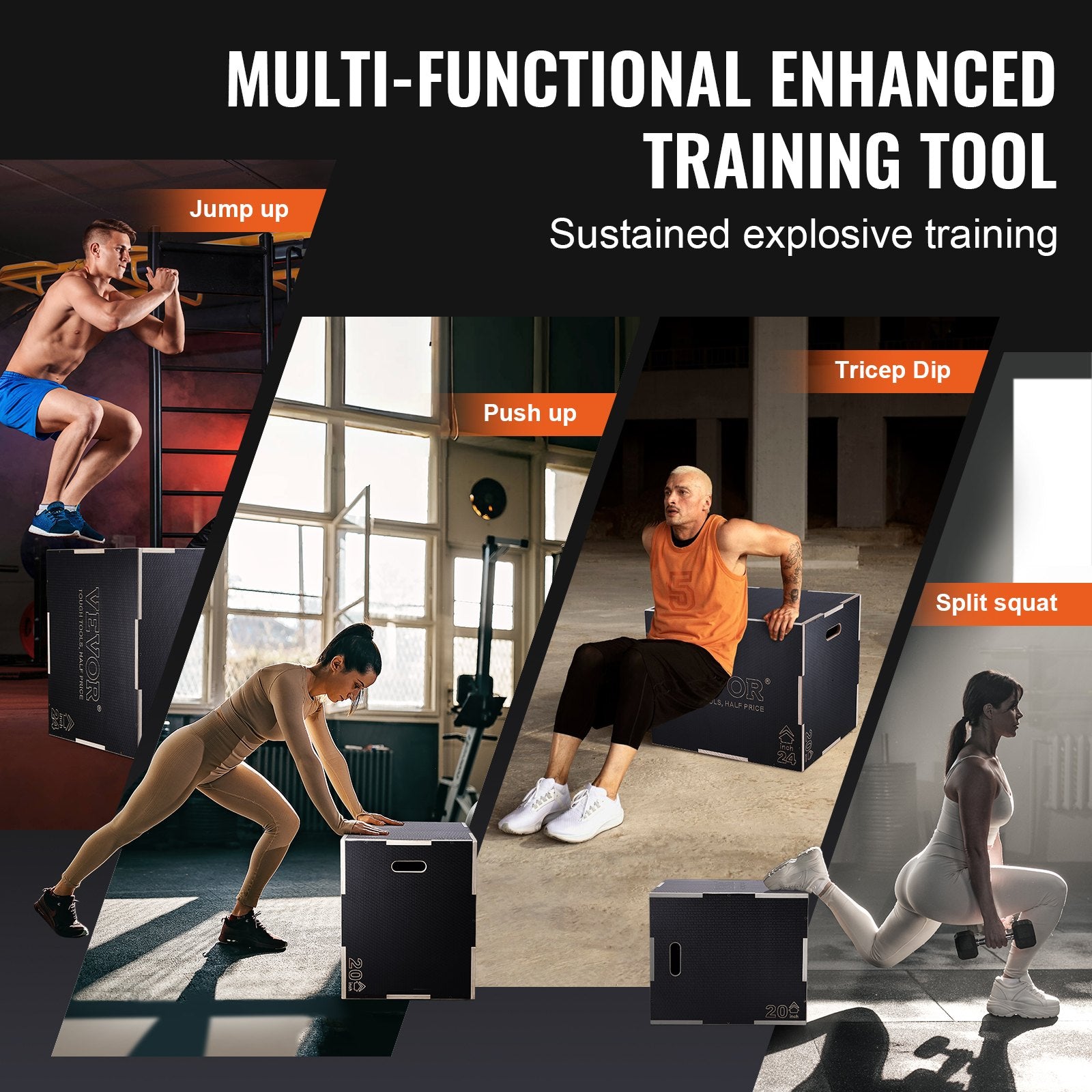 3 in 1 Plyometric Jump Box, 30/24/20 Inch Wooden Plyo Box, Platform & Jumping Agility Box, Anti-Slip Fitness Exercise Step Up Box for Home Gym Training, Conditioning Strength Training, Black
