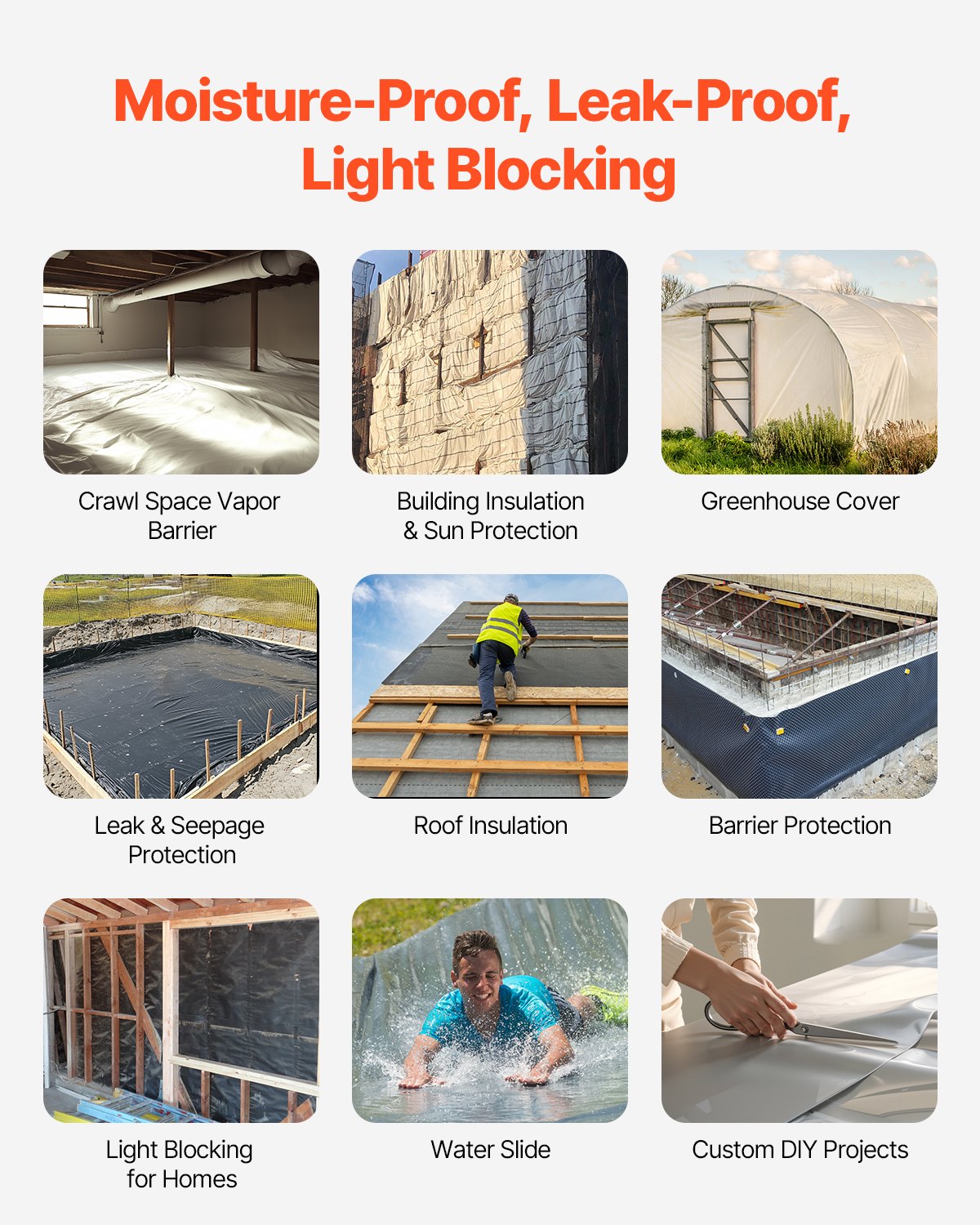 - Wide Range of Applications: This crawl space vapor barrier is ideal for weed control, barrier protection, thermal insulation, and seepage resistance, and light-blocking entertainment setups. It serves well in both agricultural and construction settings.