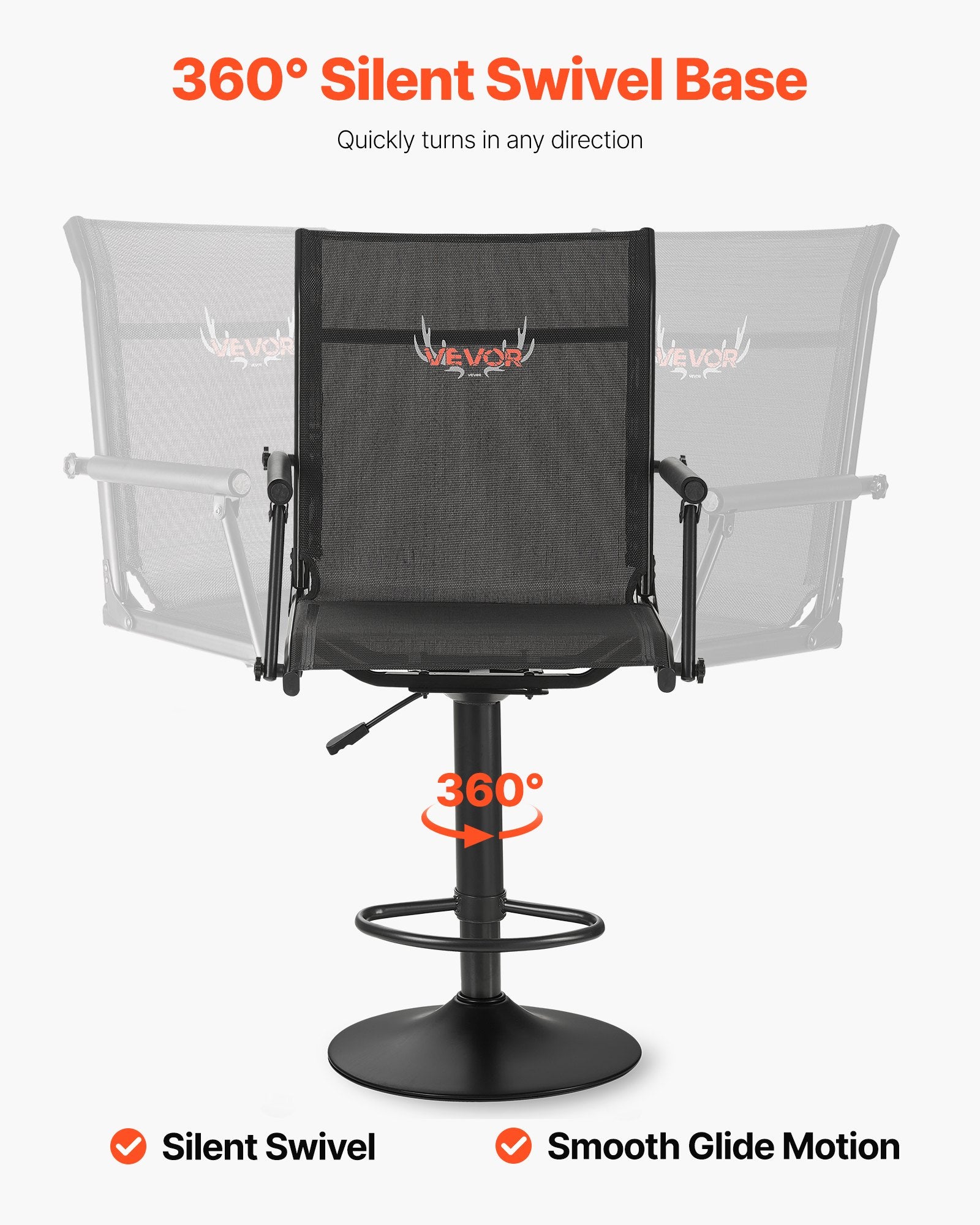 - 360° Silent Swivel Design: This hunting chair features an upgraded silent base that reduces noise and wobble. You can turn smoothly in any direction. Its hydraulic lift (5.9 in/150 mm) allows easy height adjustment for improved view and comfort