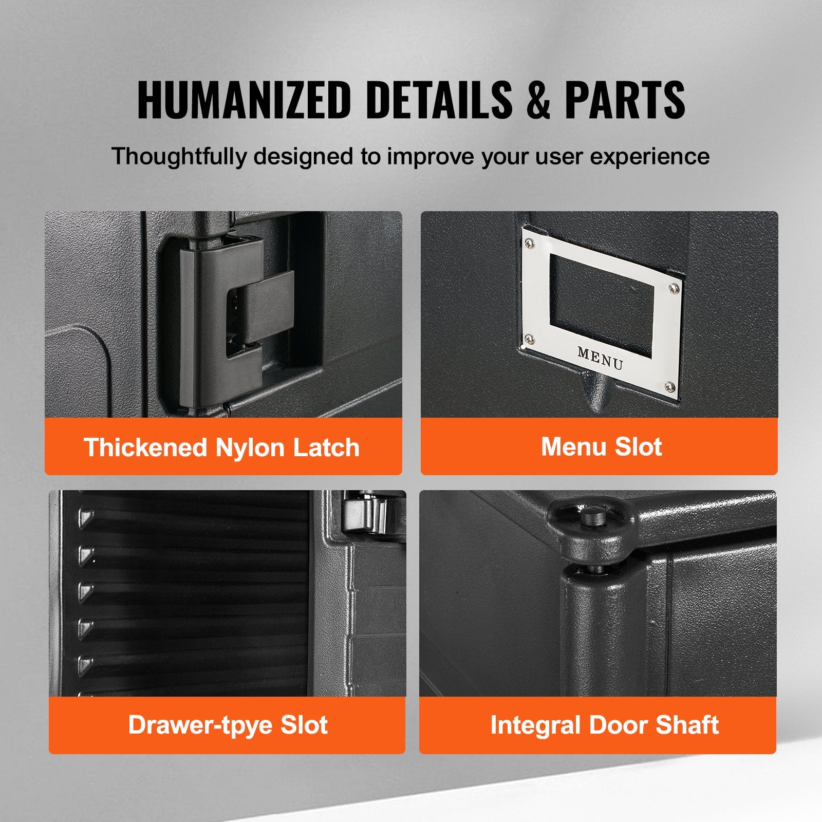- Large Internal Capacity: Fit all your food in one go! With a capacity of 82 QT, our hot boxes for catering can hold six high 2.5 inch dinner plates or three 6.5 inch dinner plates. You can transport a large amount of food at one time. With multiple slot design, you can freely combine and allocate the internal space, and it is recommended to store hot and cold food separately.