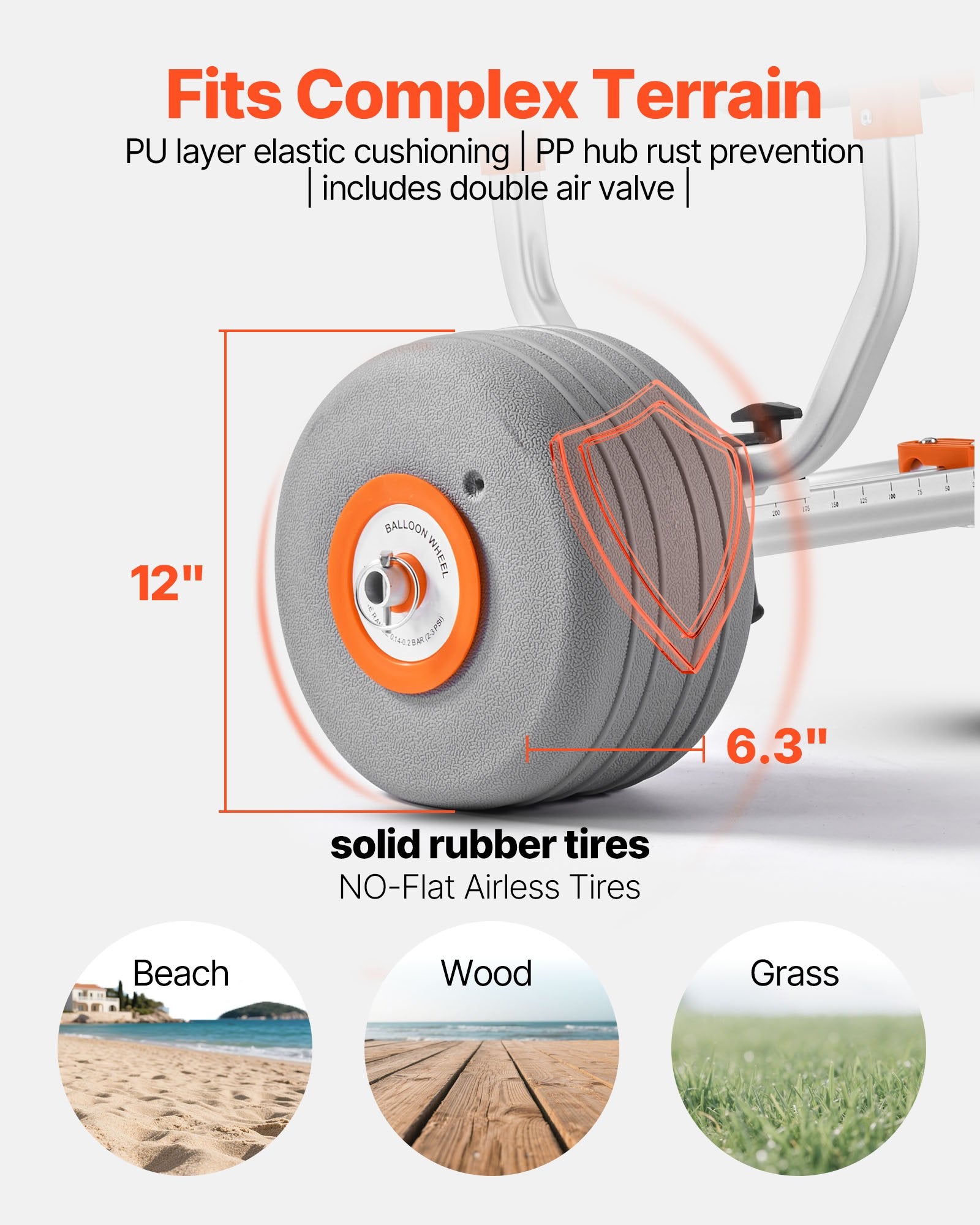- Smooth Ride: Equipped with 12-inch inflatable PU wheels and 6.3-inch wide tires, this kayak roller cart easily glides over sand, boardwalk docks, and grass. Also, comes with dual air nozzles for easy use