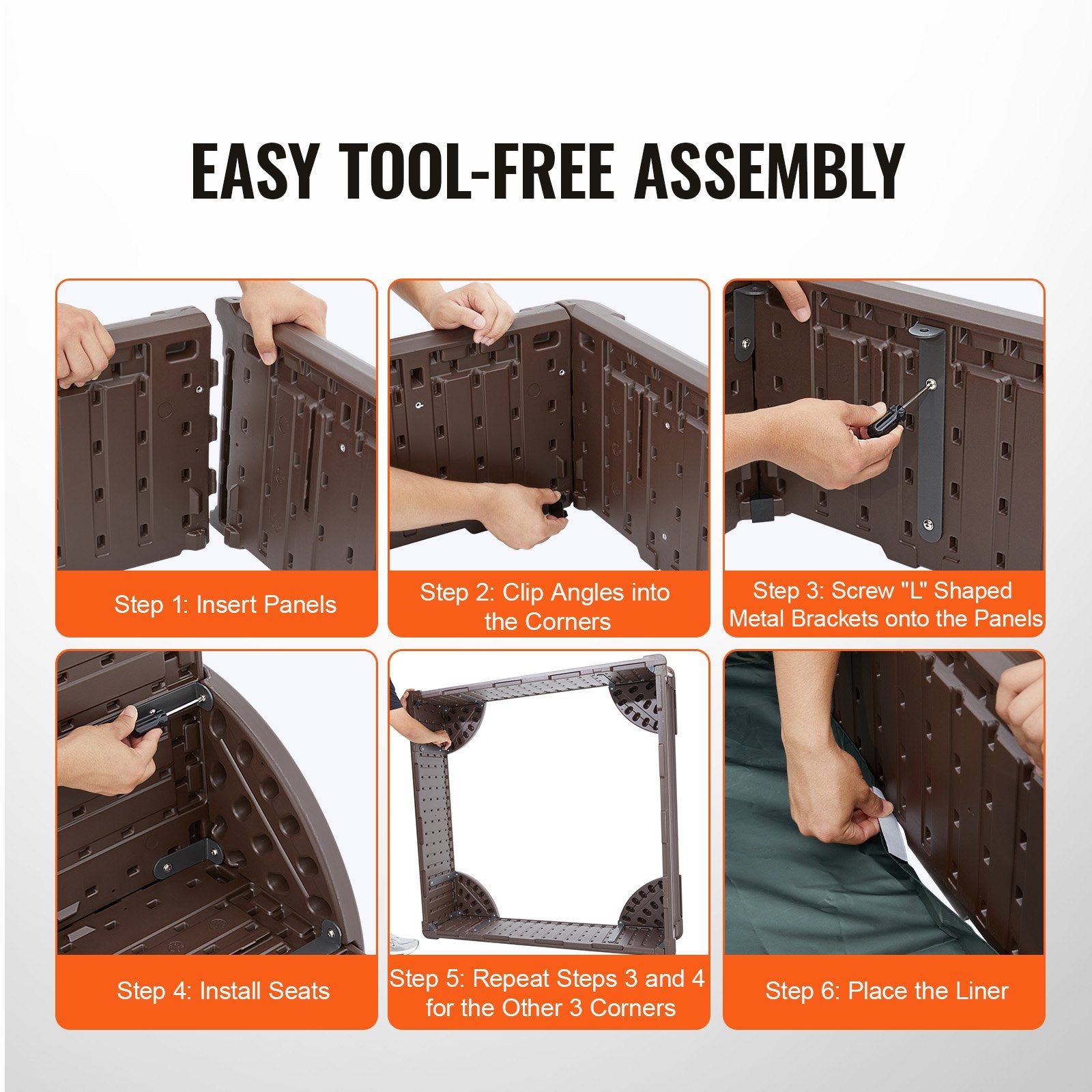 - Easy Assembly: Our kids sandbox is easy to assemble with no tools required. Simply insert the panels into the slots, place the liner, and attach the seats. Clear installation instructions are included to help you create the perfect children's play space in no time.