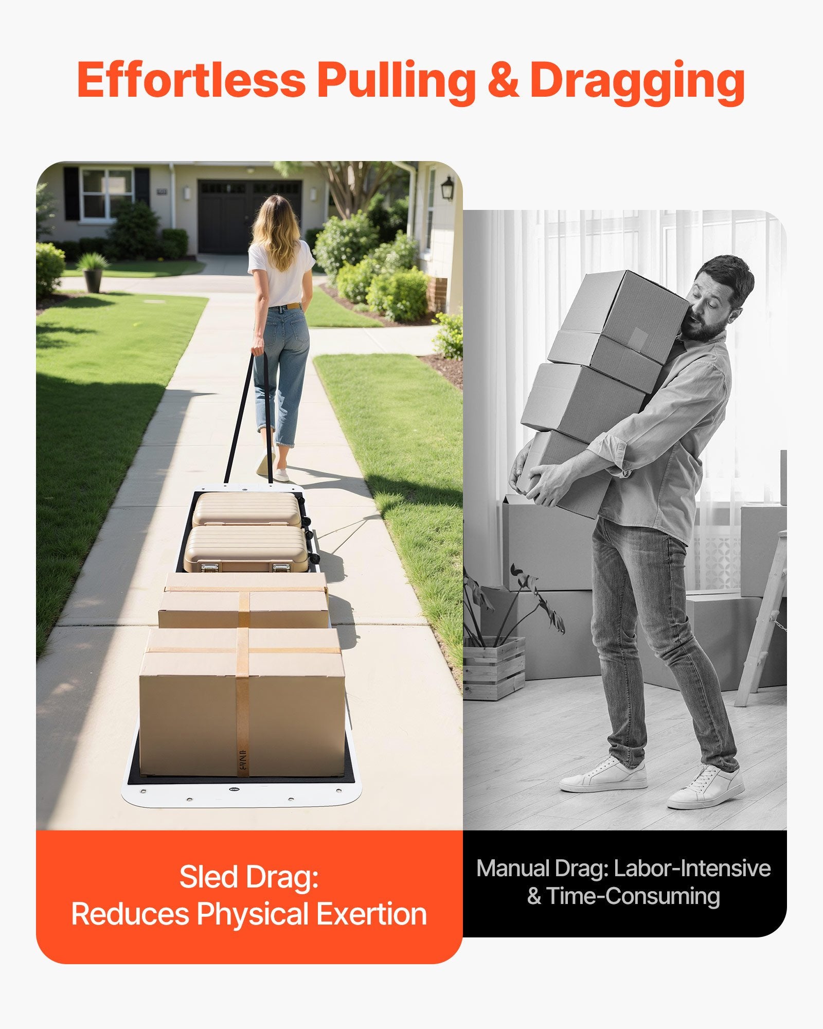 - Effortless Towing: Equipped with two high-strength webbing straps, the utility sled offers strong pulling power, ensuring easy movement of heavy items without effort, saving time and energy during transportation.