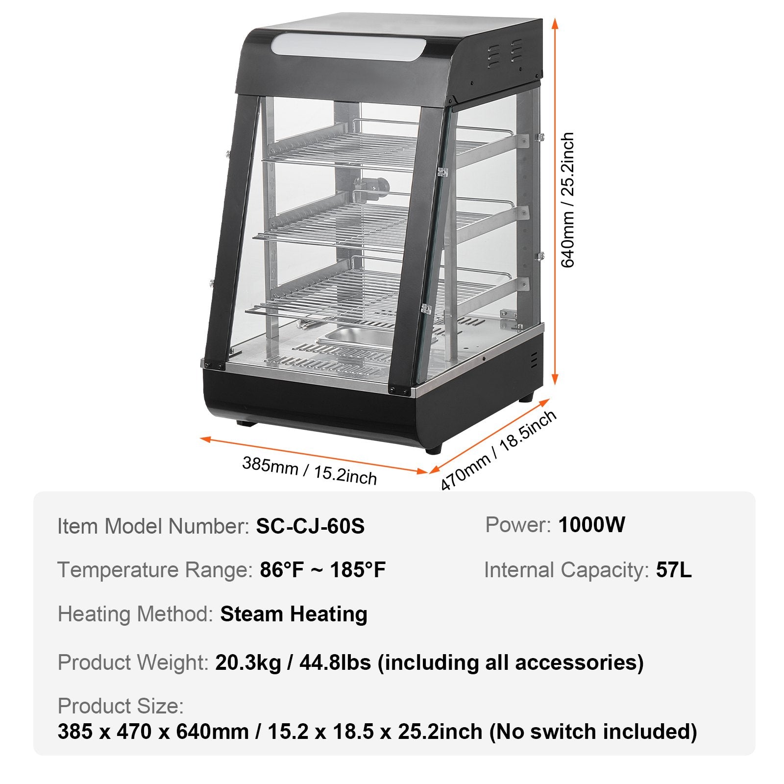 - Product Size: 15.16 x 18.50 x 25.20 inch / 385 x 470 x 640 mm (No switch included)