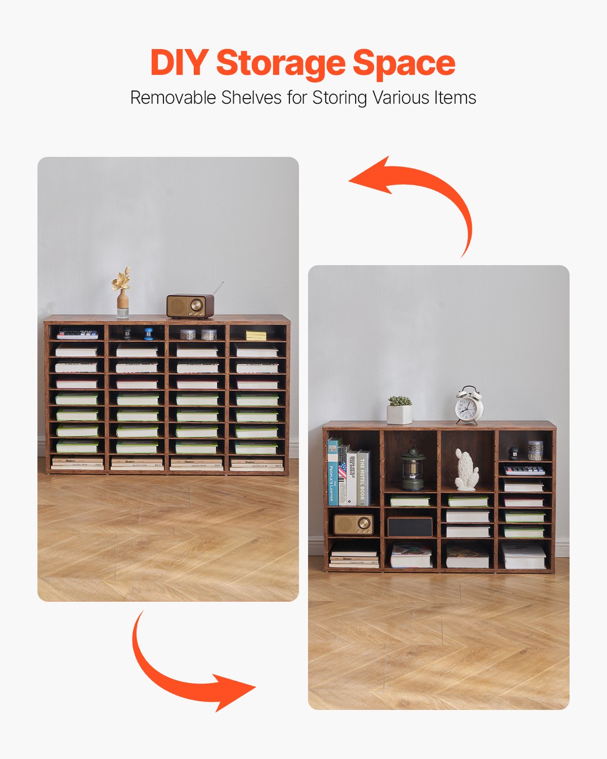 Literature Organizer, 36 Compartments Office Mailbox with Removable Shelves, Wood Mailbox Sorter Particle Board Office Home Classroom Storage, File Sorter for File, Document, Paper, Dark Brown
