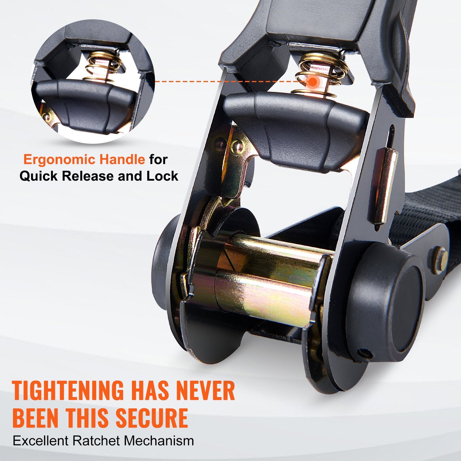 - Versatile Application: VEVOR ratchet straps provide durable and reliable security for transporting various small and large objects, including motorcycles, canoes, kayaks, ATVs, boxes, boats, furniture, lawn equipment, heavy machinery, and other cargo via truck beds, trailers, or roof racks.