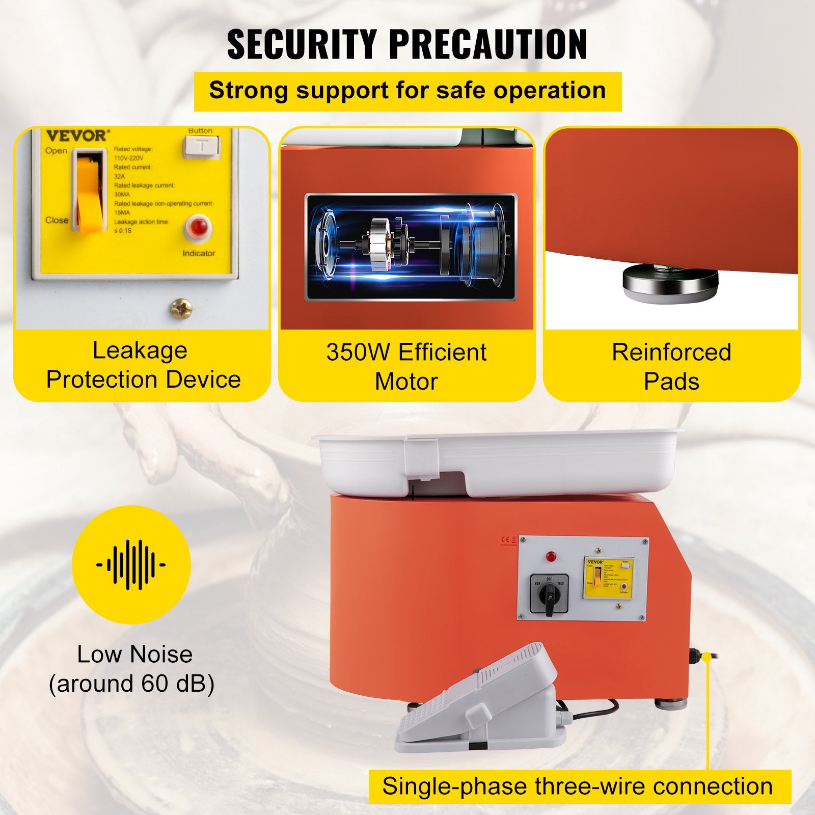 Pottery Wheel 27.9 cm 0-300 RPM Ceramic Wheel, 350W Adjustable Speed Forming Machine with Sculpting Tools and Apron, Detachable Basin Foot Pedal Control for Art Craft Work and Home DIY Orange