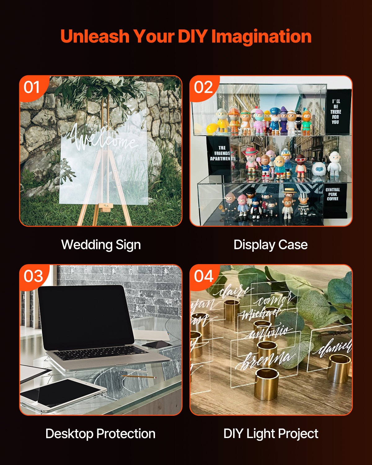 - Windproof, Rainproof, Sunlight-Tolerant: Ideal for outdoor use with excellent weather, wind, rain, and sunlight resistance. Replace fragile window glass with our durable acrylic sheets to enhance security and durability. Ideal for silk screening, laser CNC engraving, printing designs, and creating crafts, wedding signs, brand signage, furniture shelves, display stands, screen protectors, and more