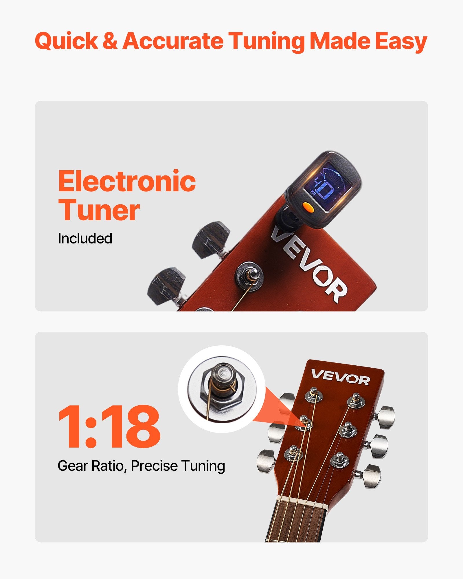 - Play with Ease: This acoustic guitar comes with a tuner for quick, accurate tuning. The smooth rosewood fingerboard and polished edges provide a comfortable grip, ensuring a more joyful playing experience