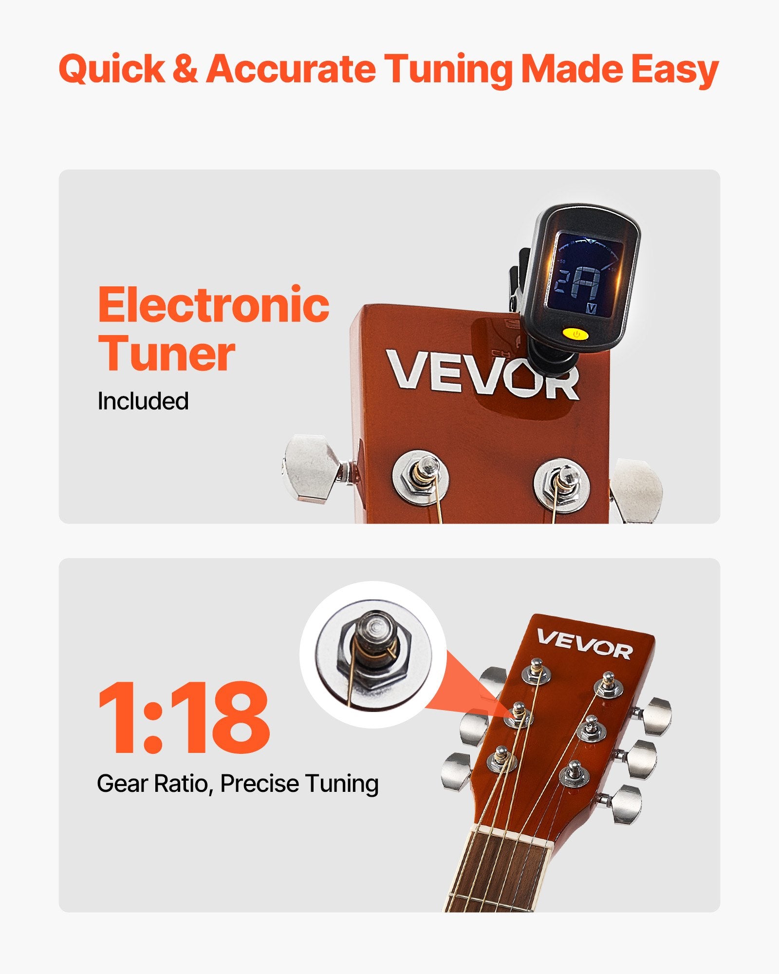 - Play with Ease: This acoustic guitar comes with a tuner for quick, accurate tuning. The smooth rosewood feel and polished edges provide a comfortable grip, ensuring a more joyful playing experience