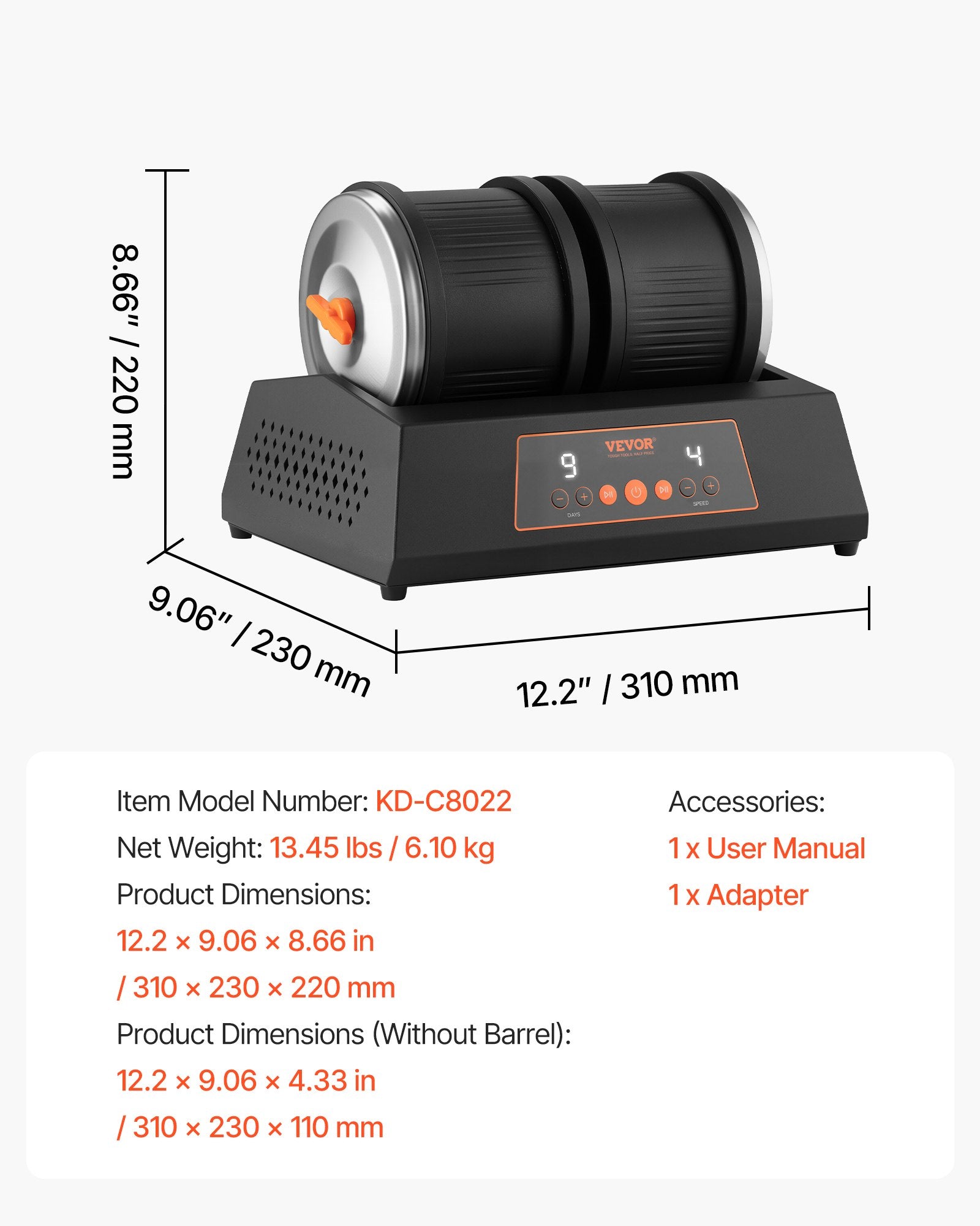 - High Load Capacity: This rock polisher comes with a 8 lbs heavy-load barrel that holds more rocks at once, greatly improving polishing efficiency. The large capacity saves time, ensures even polishing, and reduces frequent refills for easier operation