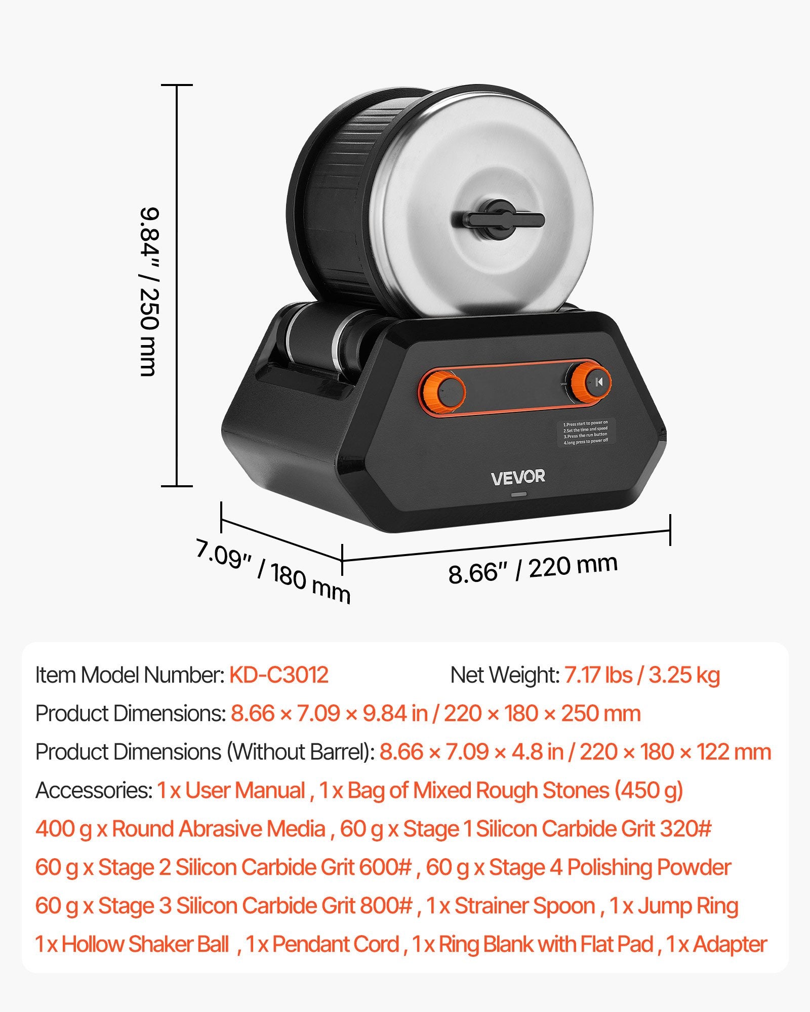 - High Load Capacity: This rock polisher comes with a 3 lbs heavy-load barrel that holds more rocks at once, greatly improving polishing efficiency. The large capacity saves time, ensures even polishing, and reduces frequent refills for easier operation