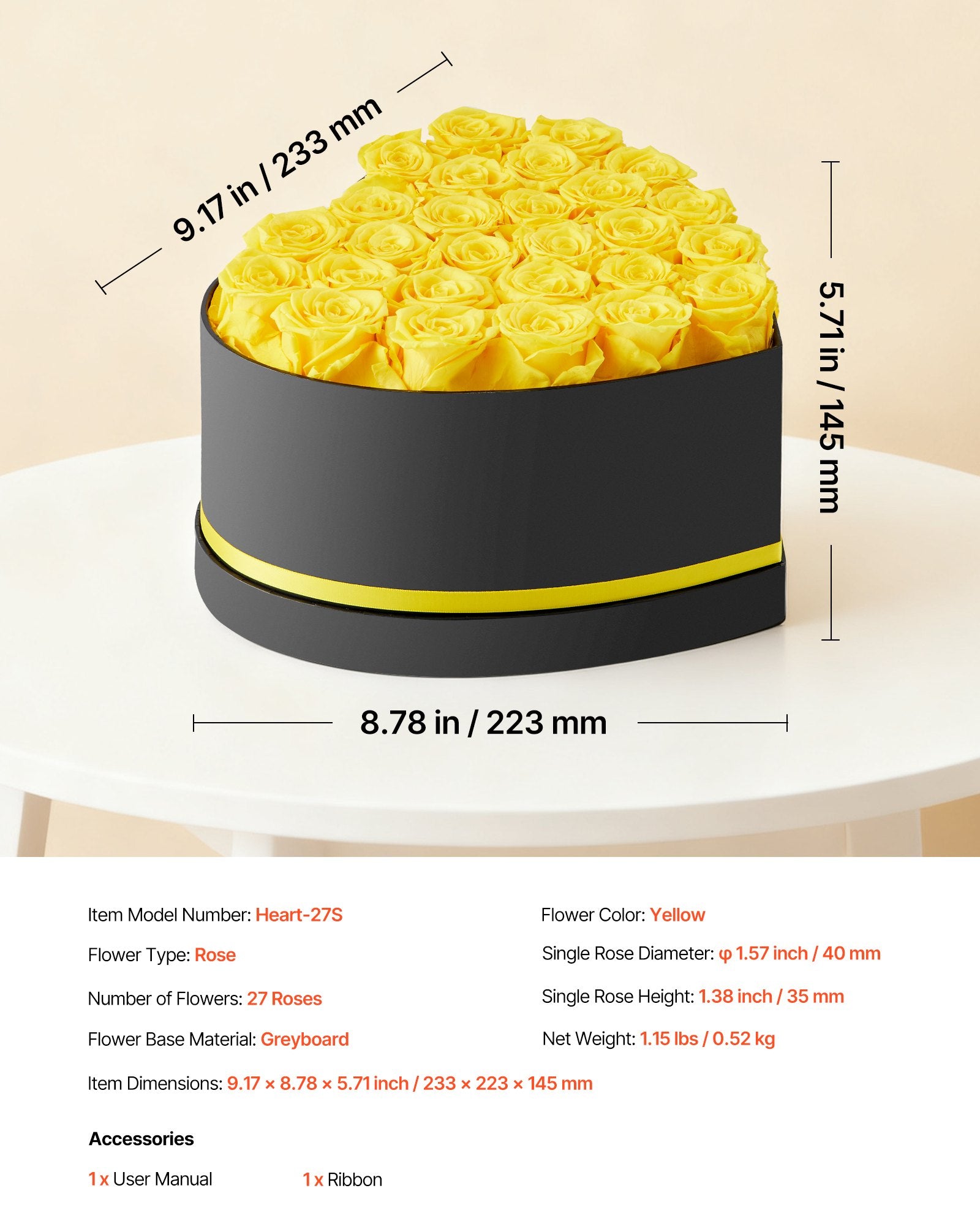 Forever Flowers, 27 Preserved Roses in a Heart Shape Box, Eternal Flowers Immortal Bouquet Birthday Present for Women Her Wife Mothers, Anniversary, Valentine's Day,Christmas, Yellow
