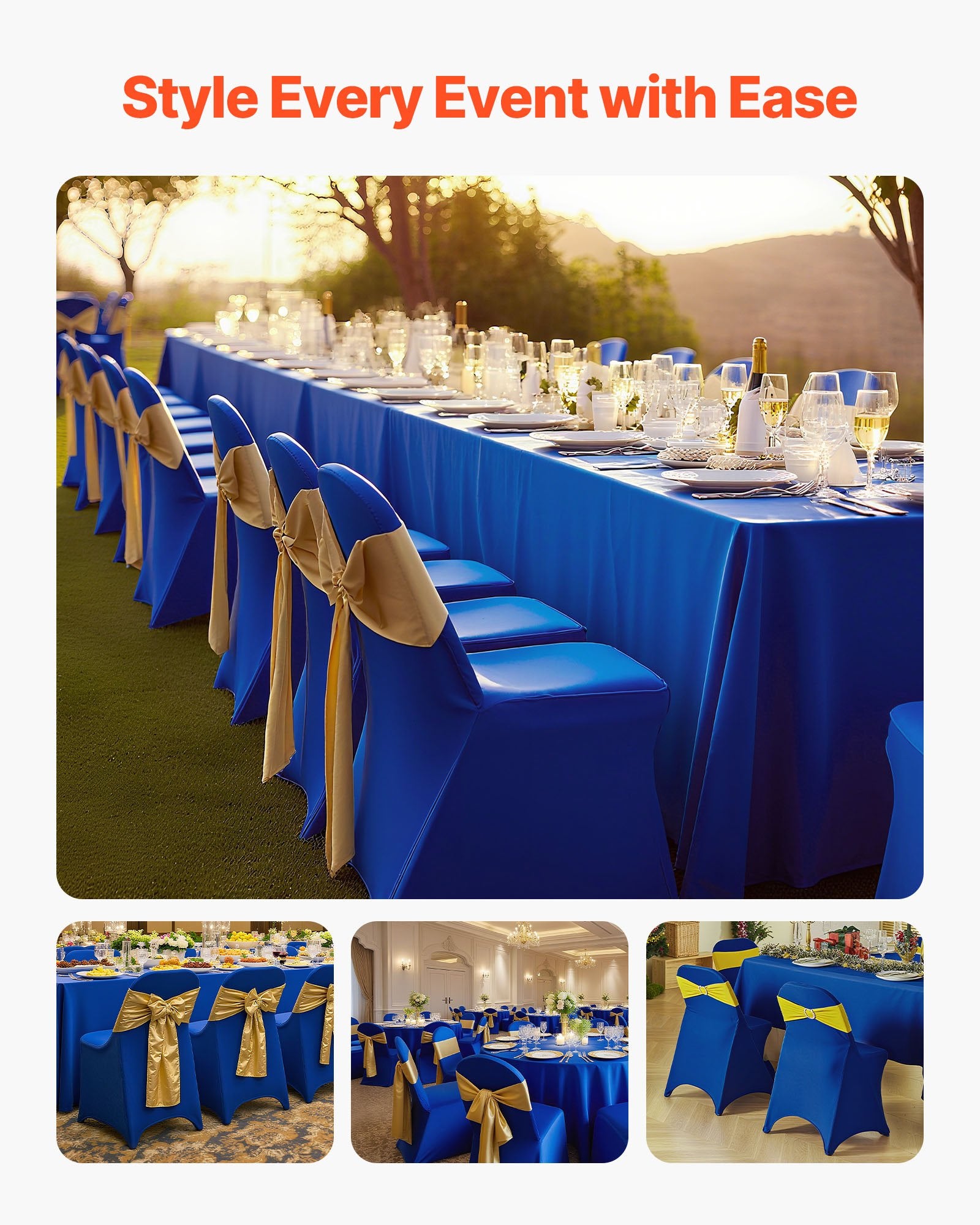 - Fittable Chairs & Occassions: These chair covers are ideal for folding chairs. You can use them to decorate personal and business events, including birthday party, wedding, business meeting, banquet, celebrations, etc