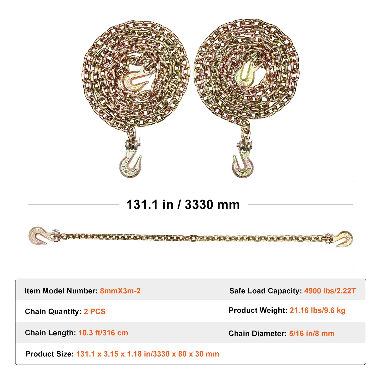 - Single Chain Length: 10.3 ft/316 cm