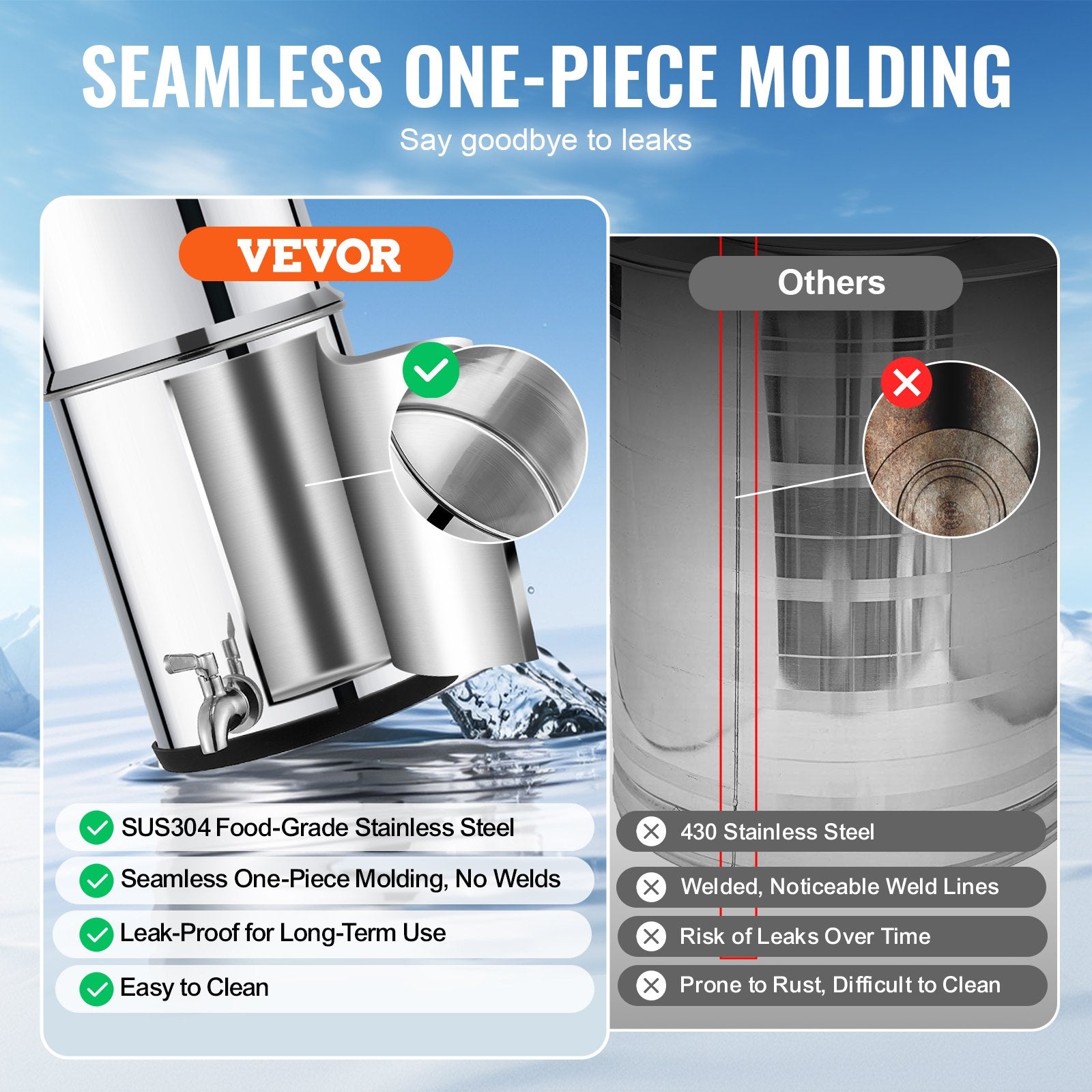 - Durability and Strength: Constructed with SUS304 food-grade stainless steel, the seamless barrel is sturdy and durable. The lack of welds or leaks of the water filtration system significantly reduces the risk of water leakage.