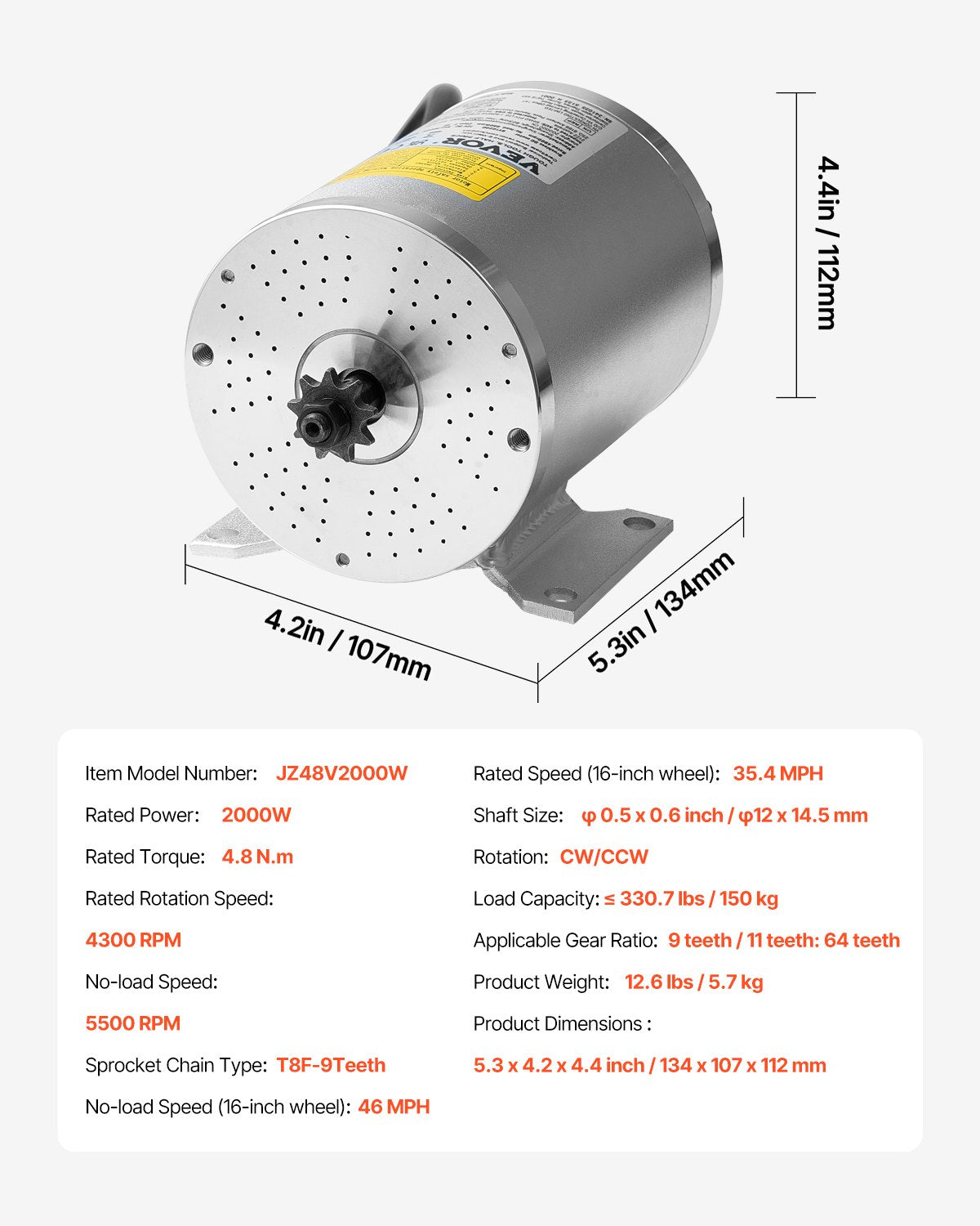 - High-Power, Efficient Performance: VEVOR brushless DC motor delivers 2000W of output power and operates efficiently with ≥85% conversion efficiency, ensuring reliable speed even on challenging terrains and less energy consumption. Perfect for electric bikes, scooters, and other DIY electric vehicle projects that require high performance.