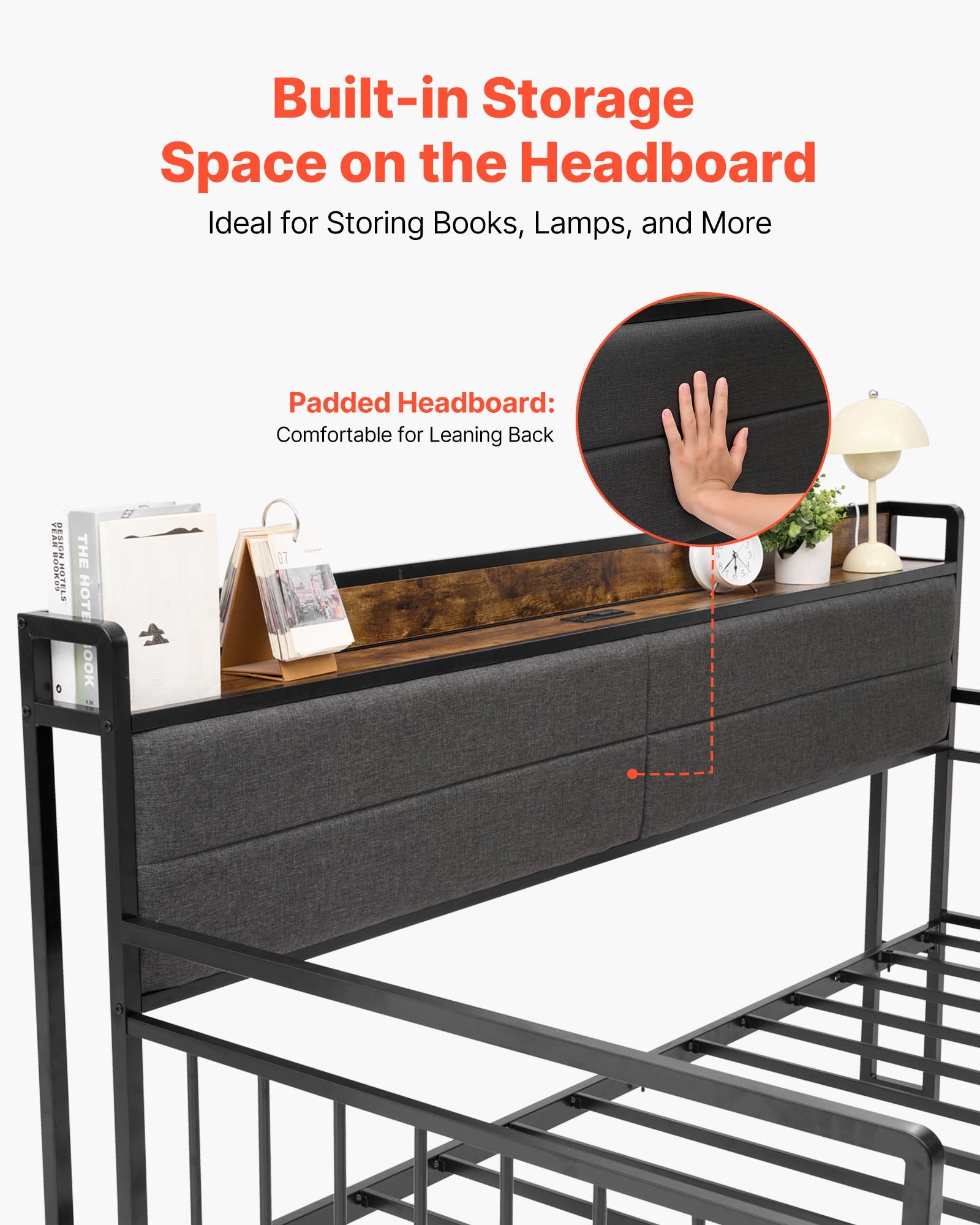 - Storage Headboard: The soft padded headboard provides a comfortable backrest experience, and the built-in storage shelf design is ideal for storing books, lamps, photos, and potted plants. This feature keeps your room tidy and comfortable, while allowing easy access to items whenever needed