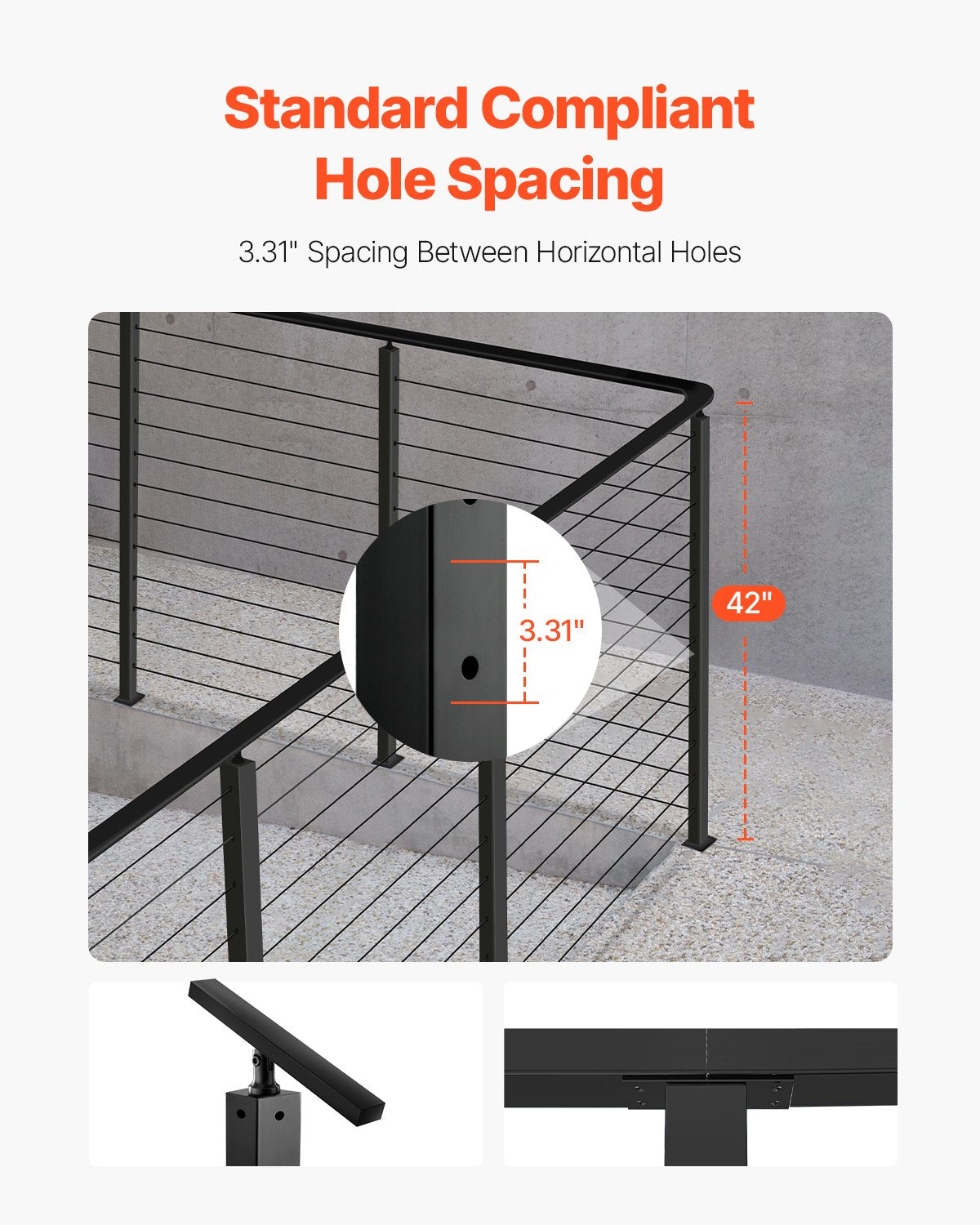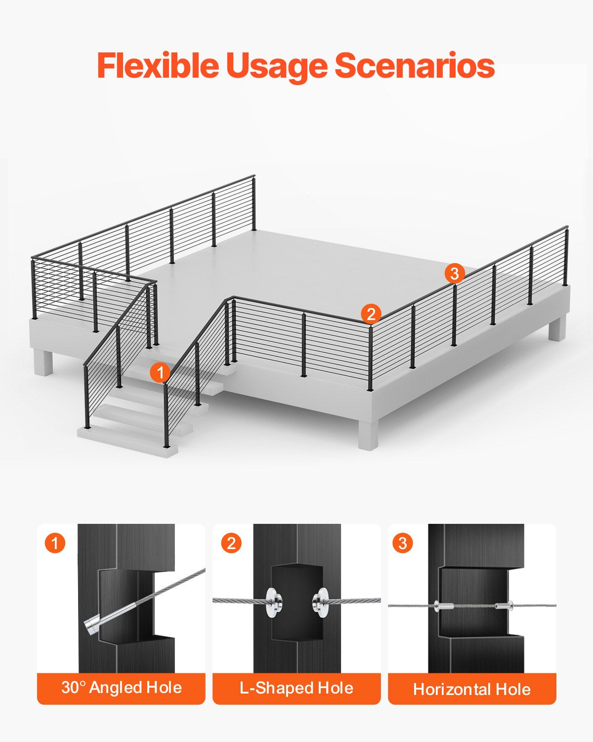 - Robust och hållbar: Vår ledstångsstolpe för kabelrör är tillverkad av högkvalitativt rostfritt stål SUS304, vilket erbjuder utmärkt rostbeständighet och korrosionsskydd för långvarig hållbarhet. Den rekommenderas dock inte för kustnära tillämpningar.