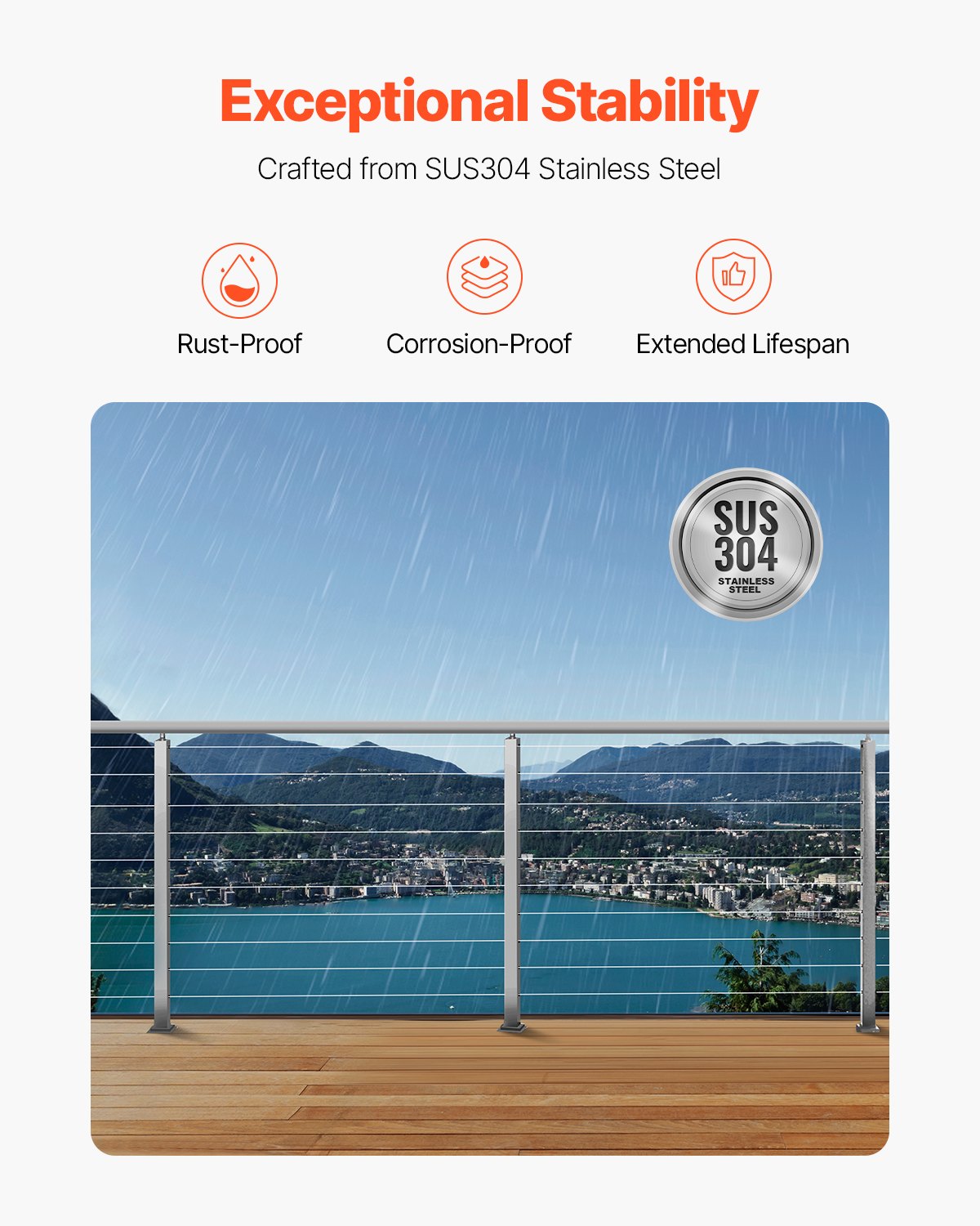 - Sturdy and Durable: Our cable handrail post is made of high-quality SUS304 stainless steel, offering excellent rust resistance and corrosion protection for long-lasting durability. However, it is not recommended for coastal applications. Note: Apply anti-rust oil to the railing shaft before initial use