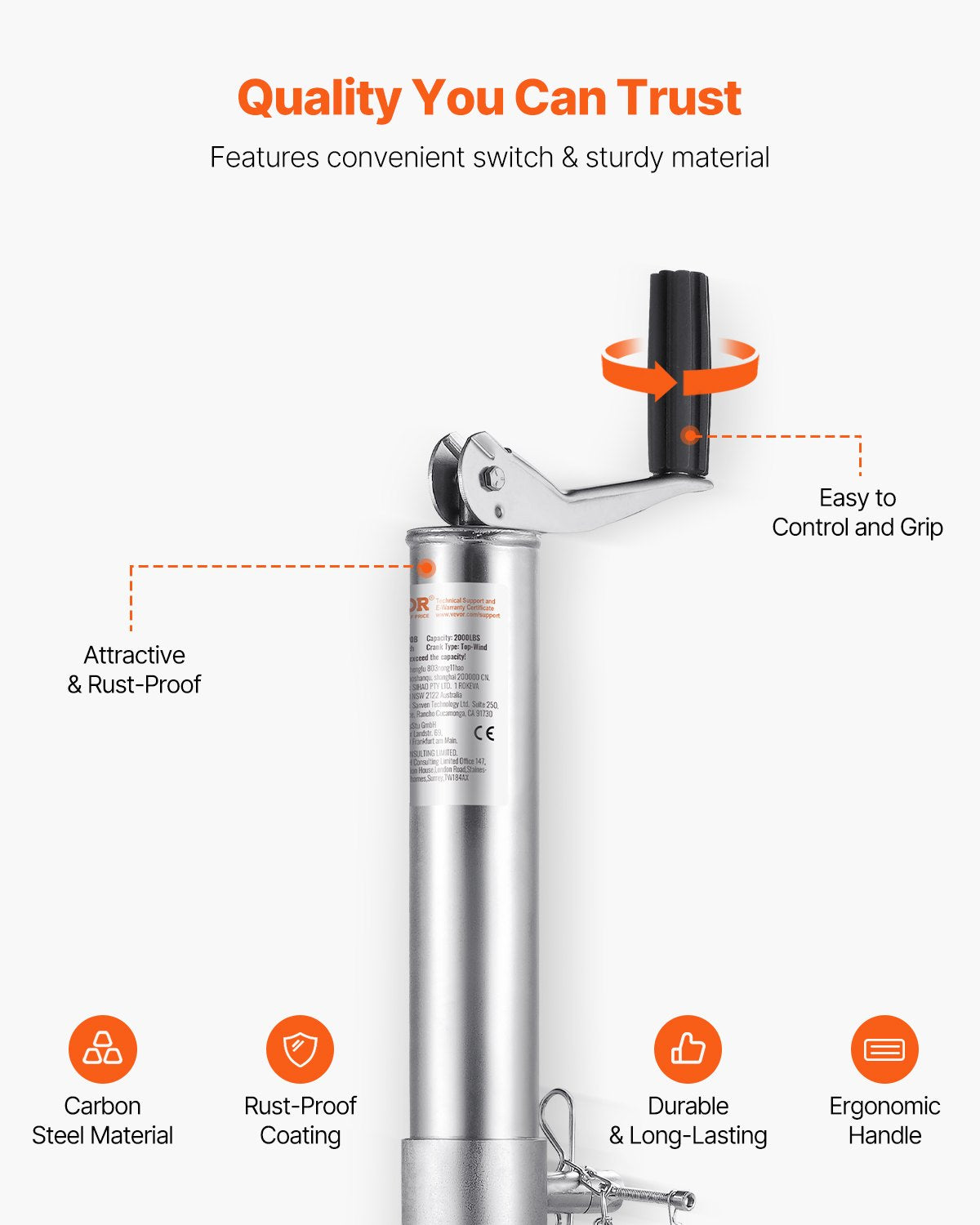 - Redo för alla jobb: Oavsett om du lyfter en husvagn, hästvagn eller vanlig vagn, klarar den här bultmonterade domkraften det. Ingen kraft behövs – bara vrid upp den, så är du redo att lyfta och sänka med lätthet och trygghet.